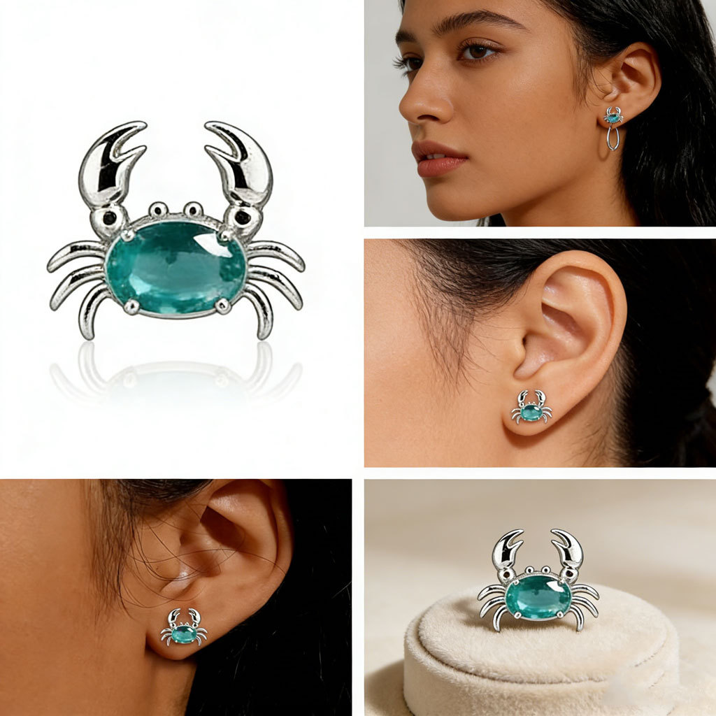 Women's Cute Crab Earrings Silver Color