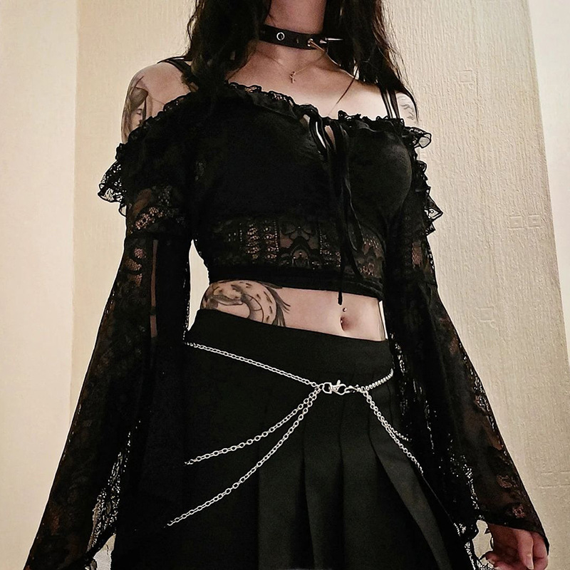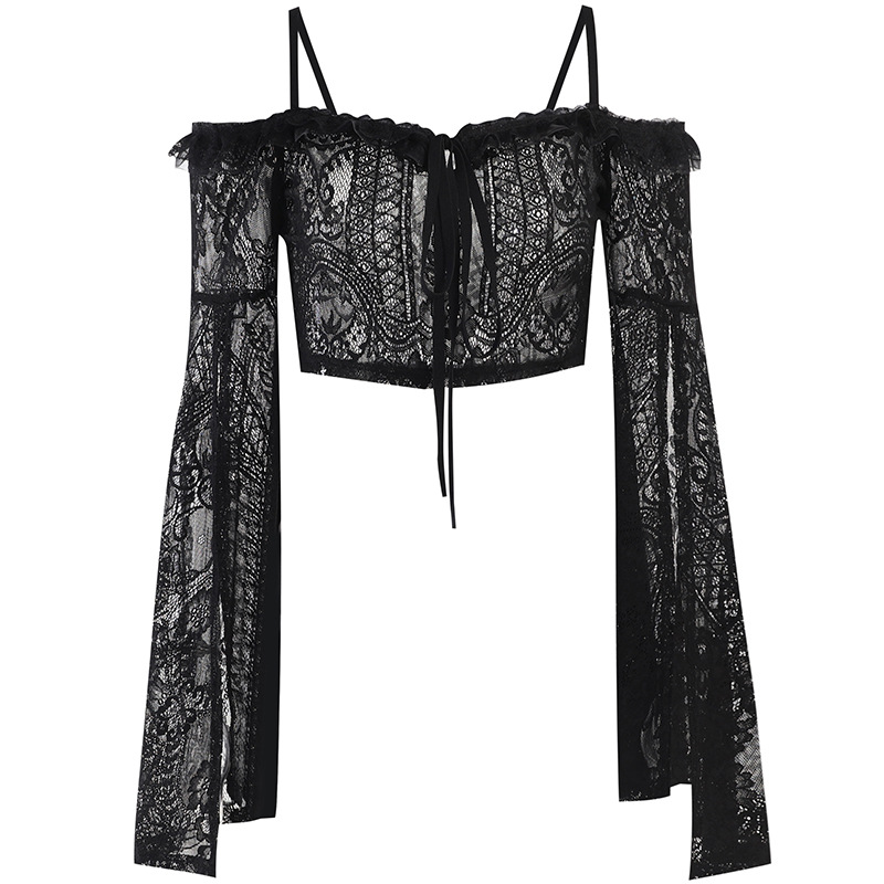 Women's Dark Style Witch Cos Split Sleeve Lace Off-shoulder Top