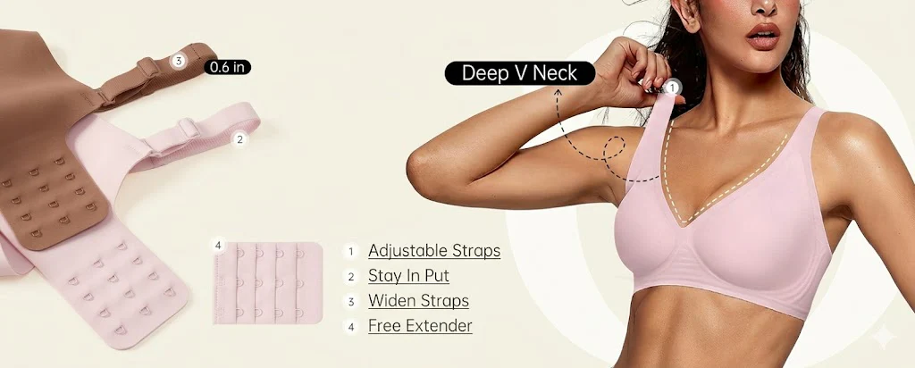 Stylish Deep V Bras for Women - The Formiva Wireless bra adopts a cute plunge design, which gathers and lifts your breasts, setting off the breast line to make your breasts more upright, round, and perfectly shaped. It showcases the seductive collarbones and cleavage under t-shirts and other clothing. The seamless Deep V bras are particularly effective in showcasing a beautiful neckline, making them ideal for wearing under low-cut tops and dresses, thus making your outfit simple and elegant.