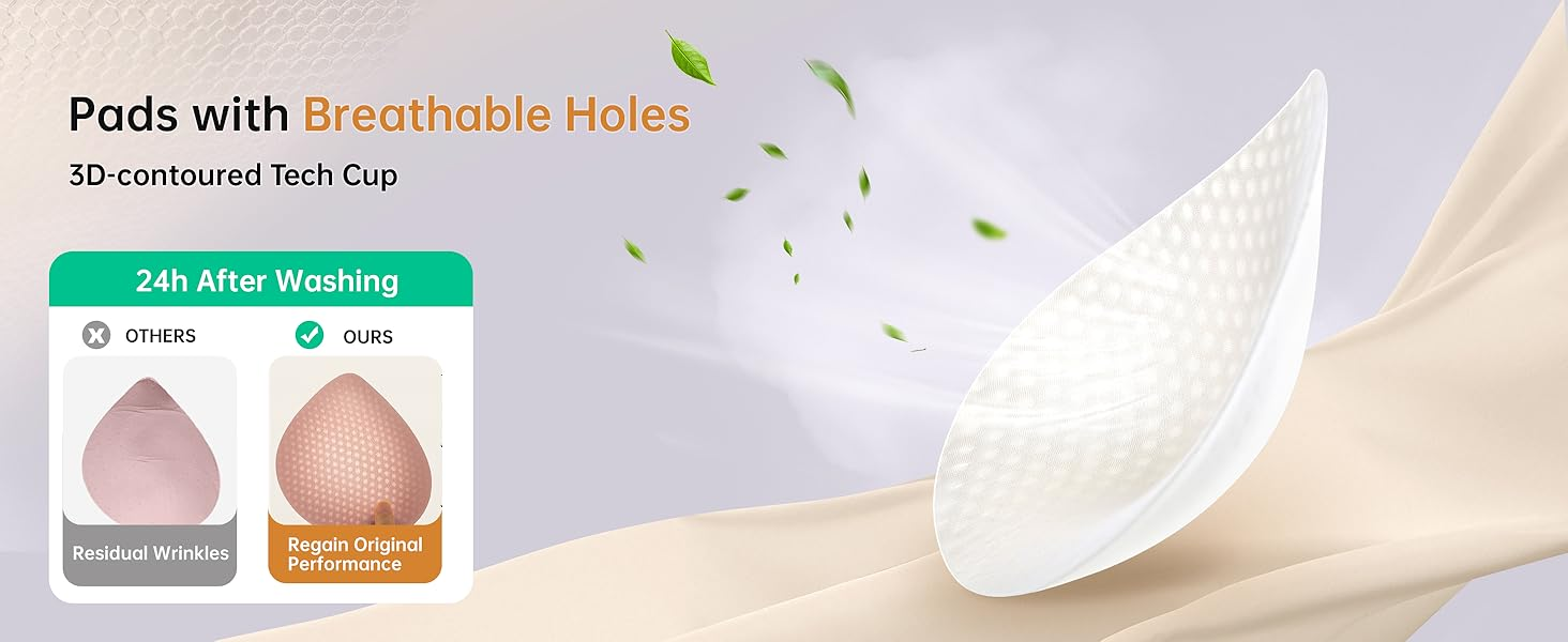 Ultra Soft and Comfortable Bras - These deep V bras with semi-fixed pads are made from high-quality fabric with a delicate texture, super breathable and gentle on the skin, providing a feather-light feeling with zero pressure. The highly stretchy design fits perfectly under your chest curve, effectively preventing the bra from slipping when lift your hands. Each semi-fixed pad has over 200 breathable holes, keeping you cool and comfortable for 24 hours.