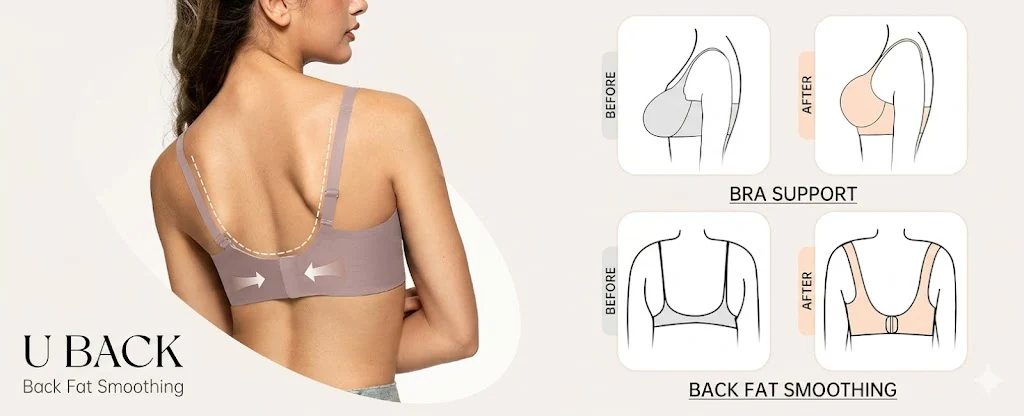 Seamless Bras with Sexy U-Shaped Back - These invisible bras with adjustable, non-slip straps provide better support and reduce pressure on the shoulders and neck. The seamless U-shaped back design stays hidden under any outfit, including backless tops. The integrated back hooks and widened sides make the bras supportive and ensure back fat smoothing.