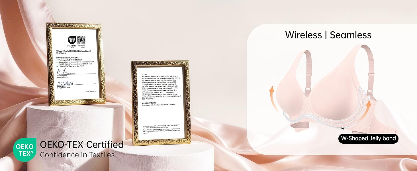 Full Support Bras - These no-wire bras feature a "W-shaped" and innovative 3D supportive technology formed by liquid jelly band, providing full support for your breasts and creating a full, natural-looking chest without the discomfort of a traditional underwire bra. The widened side of the bras with jelly band can effectively conceal excess fat.