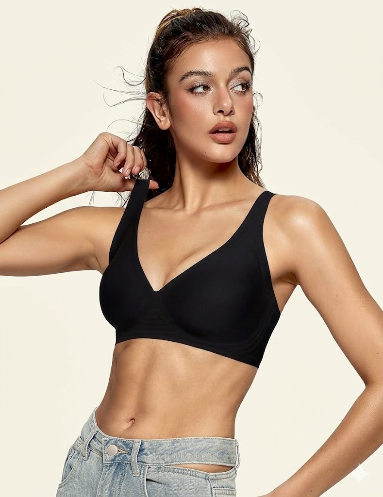 Womens Deep V Bras Wireless Comfortable Bra Supportive No Underwire Bras Tshirt Push Up Bralettes Plunge Seamless Bra