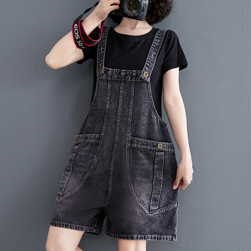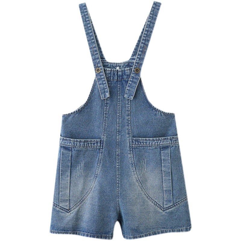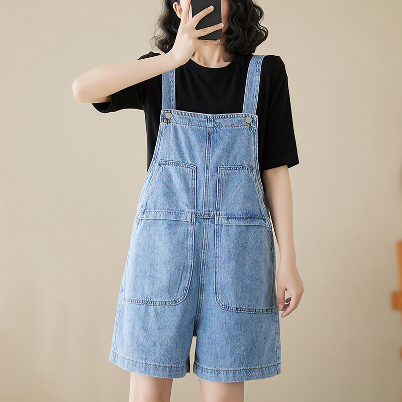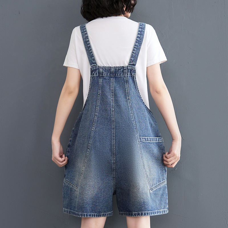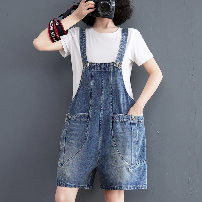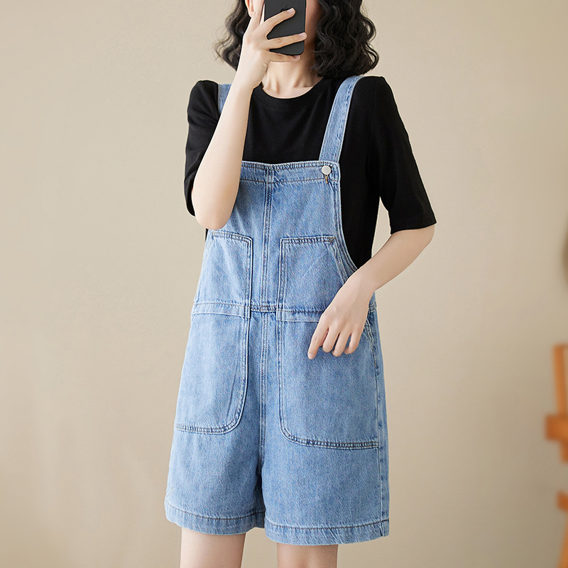 Women's Denim Suspender Loose Fitting Wide Leg Capris