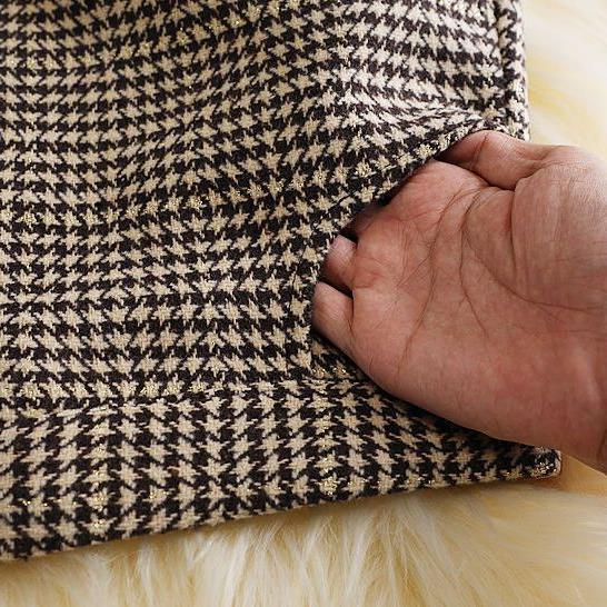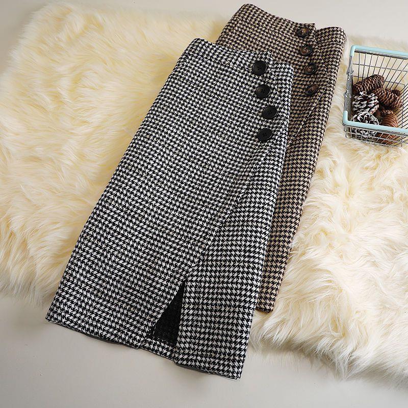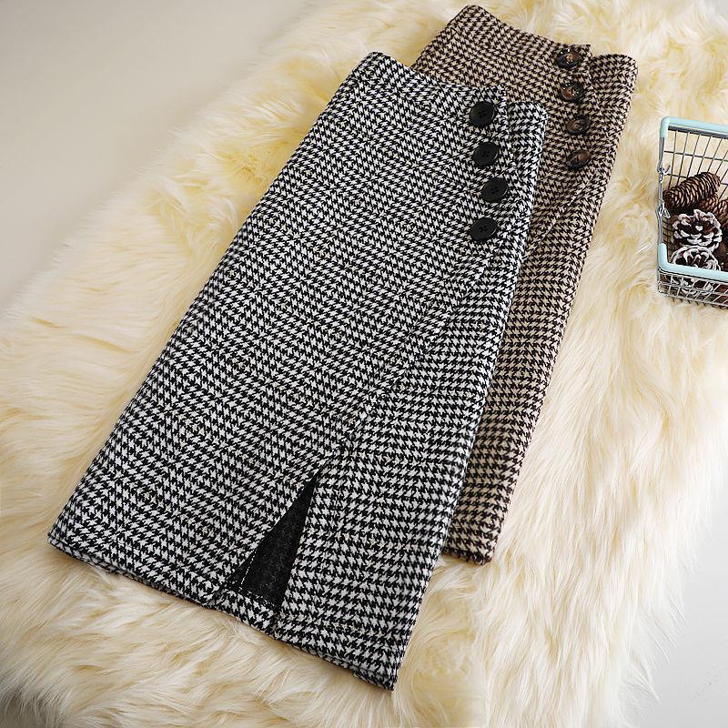 Color: houndstooth medium length woolen skirt Black, houndstooth medium length woolen skirt Brown