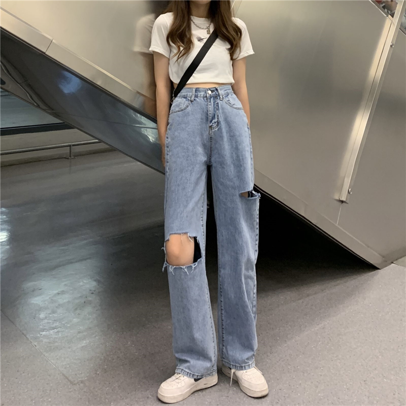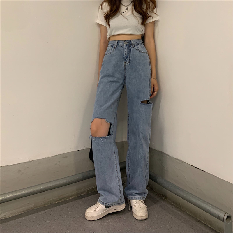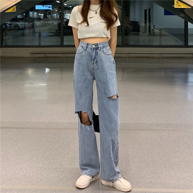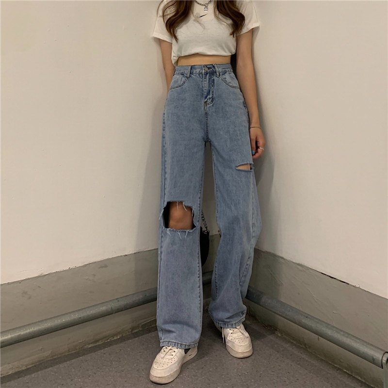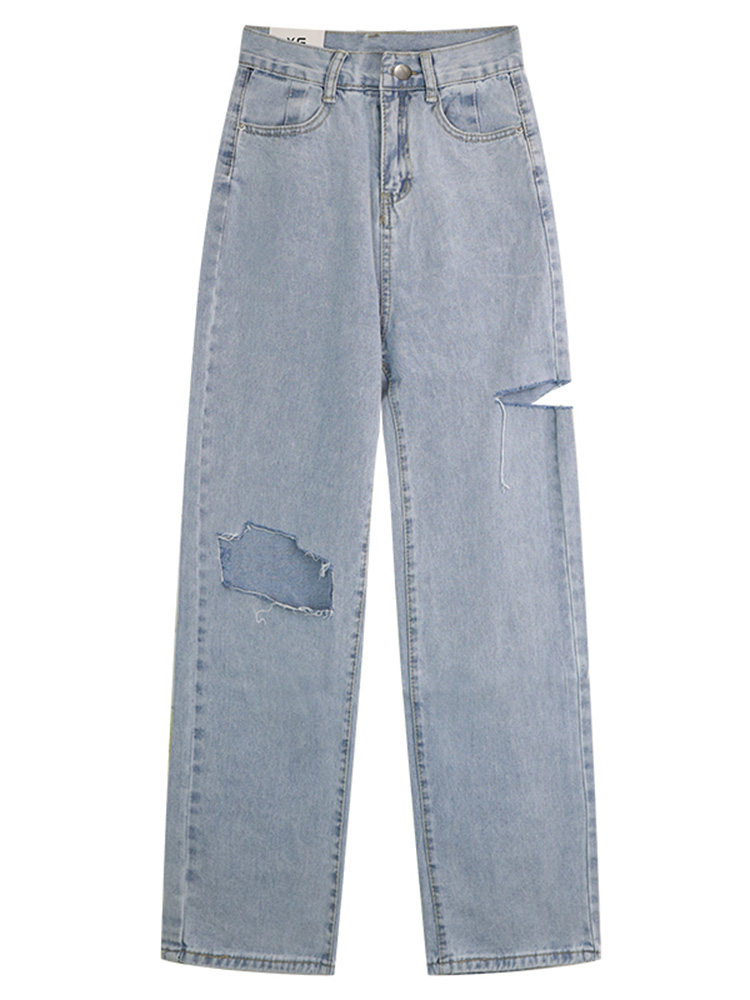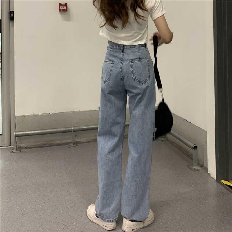 Women's Design Small High Waist Wide Leg Loose Straight Pants