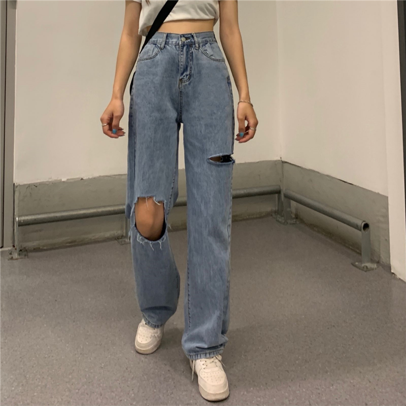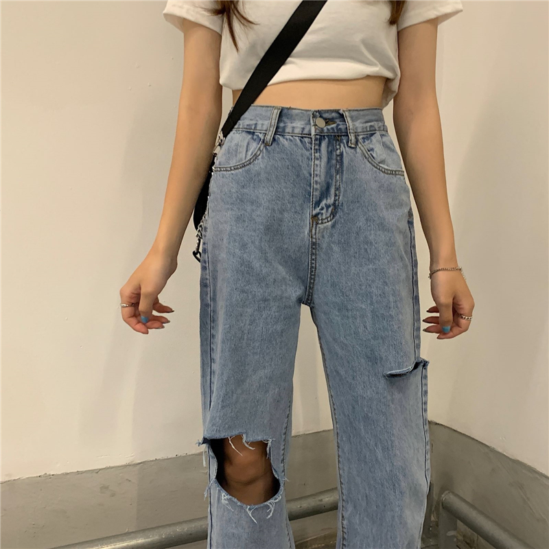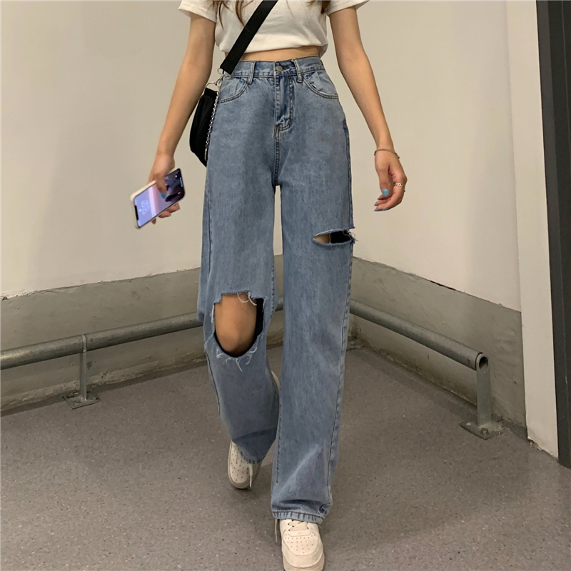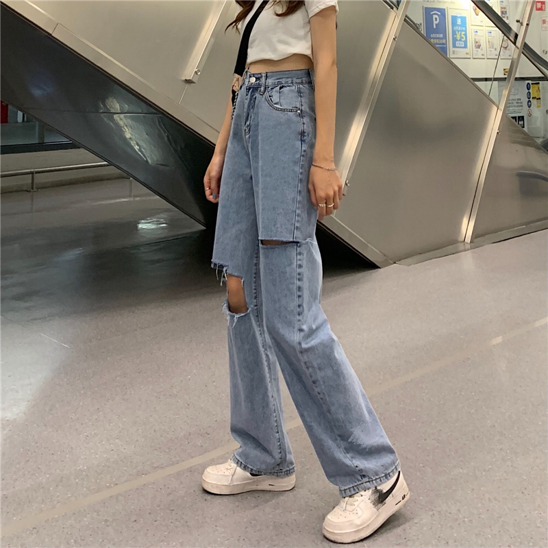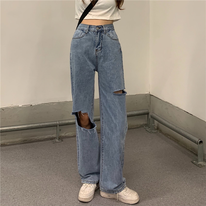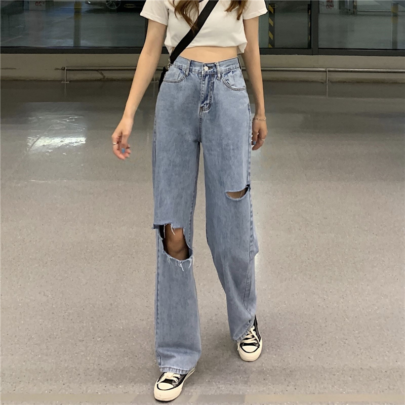 Women's Design Small High Waist Wide Leg Loose Straight Pants