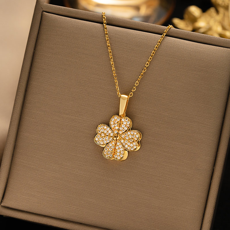 Color: X-8194 gold four-leaf clover necklace, X-8194 silver four-leaf clover necklace