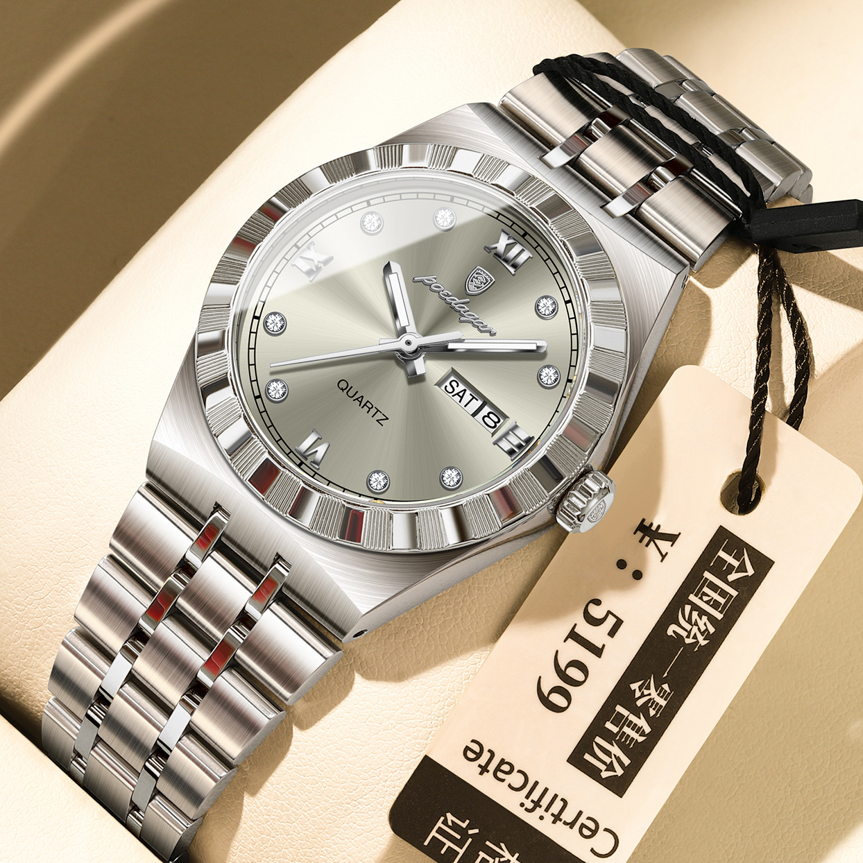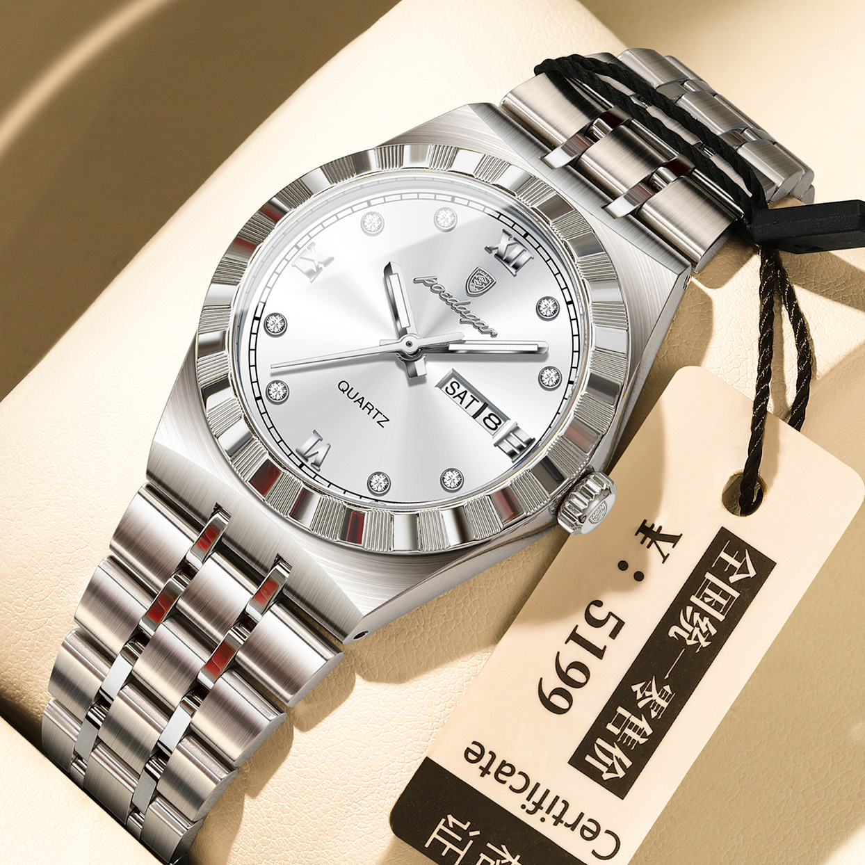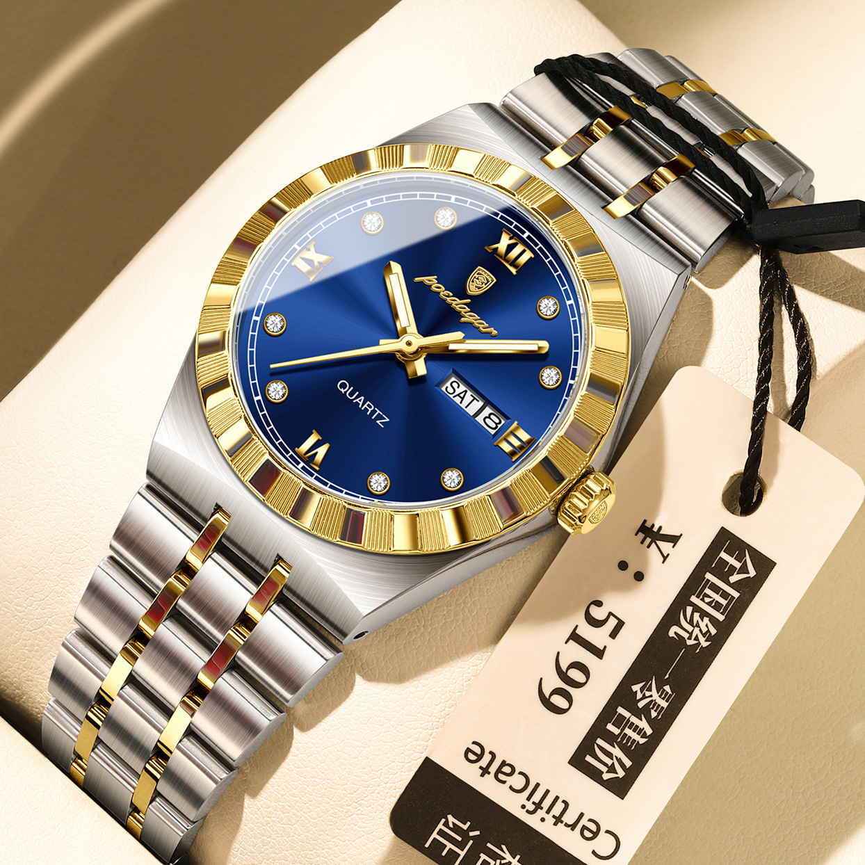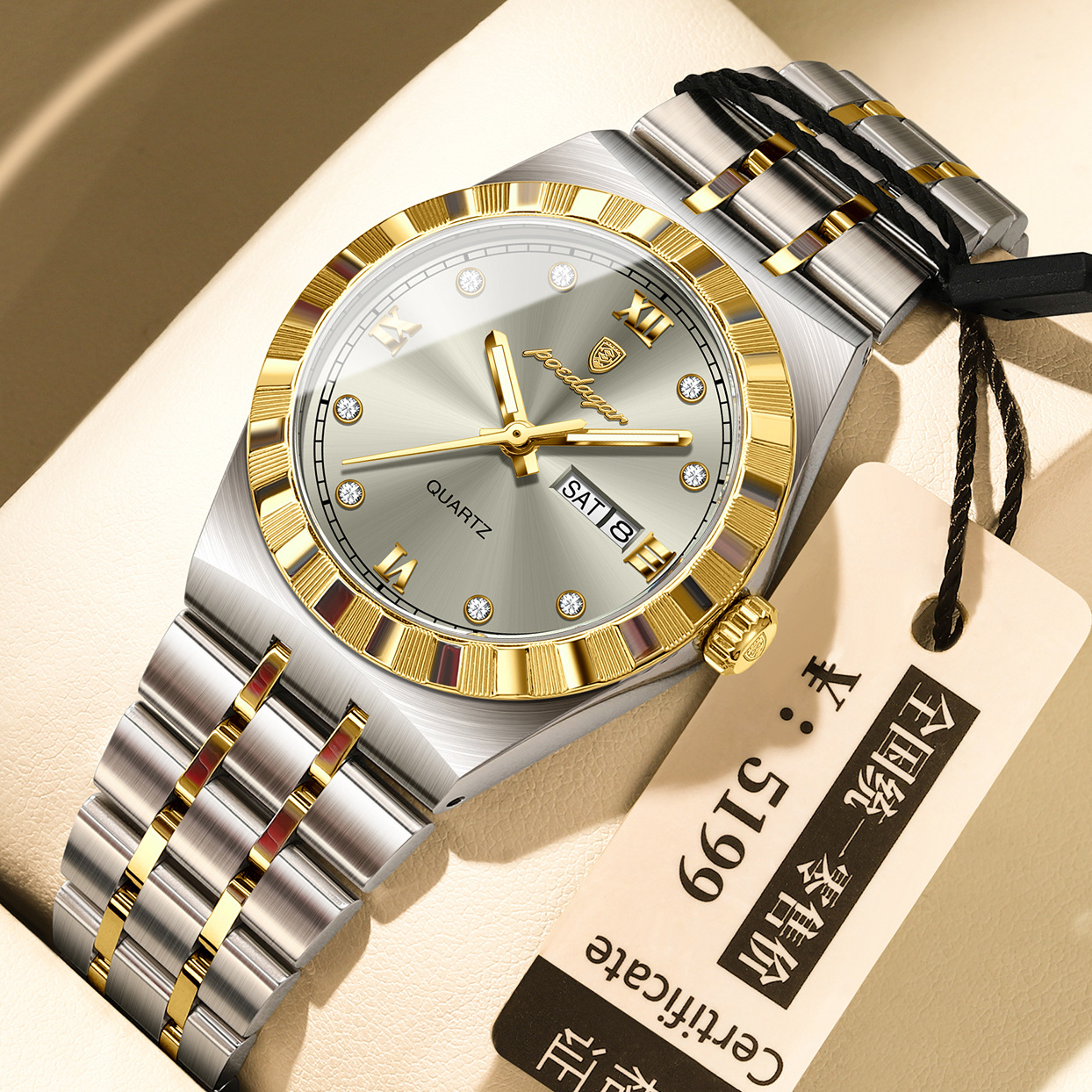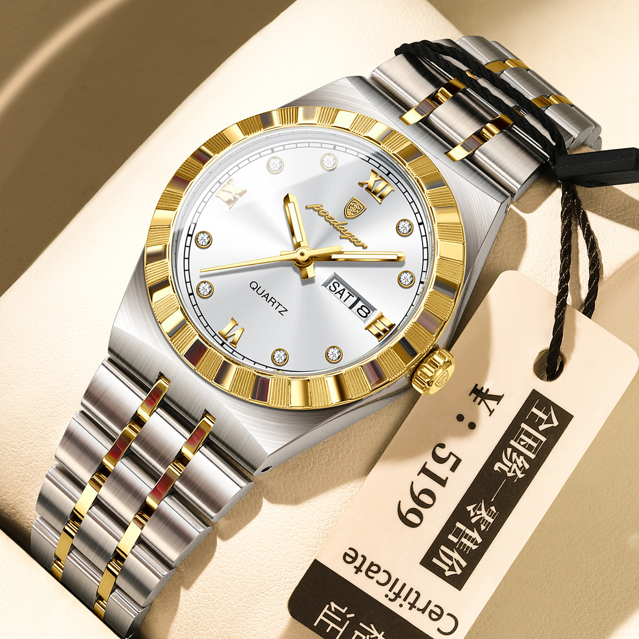 Color: 794 gold case, gold dial, steel bracelet; 794 black case, black dial, steel bracelet; 794 two-tone gold and gray dial, steel bracelet; 794 two-tone gold and white dial, steel bracelet; 794 two-tone gold and black dial, steel bracelet; 794 two-tone gold and blue dial, steel bracelet; 794 two-tone gold and green dial, steel bracelet; 794 silver case, white dial, steel bracelet; 794 silver case, black dial, steel bracelet; 794 silver case, gray dial, steel bracelet; 794 silver case, blue dial, steel bracelet.