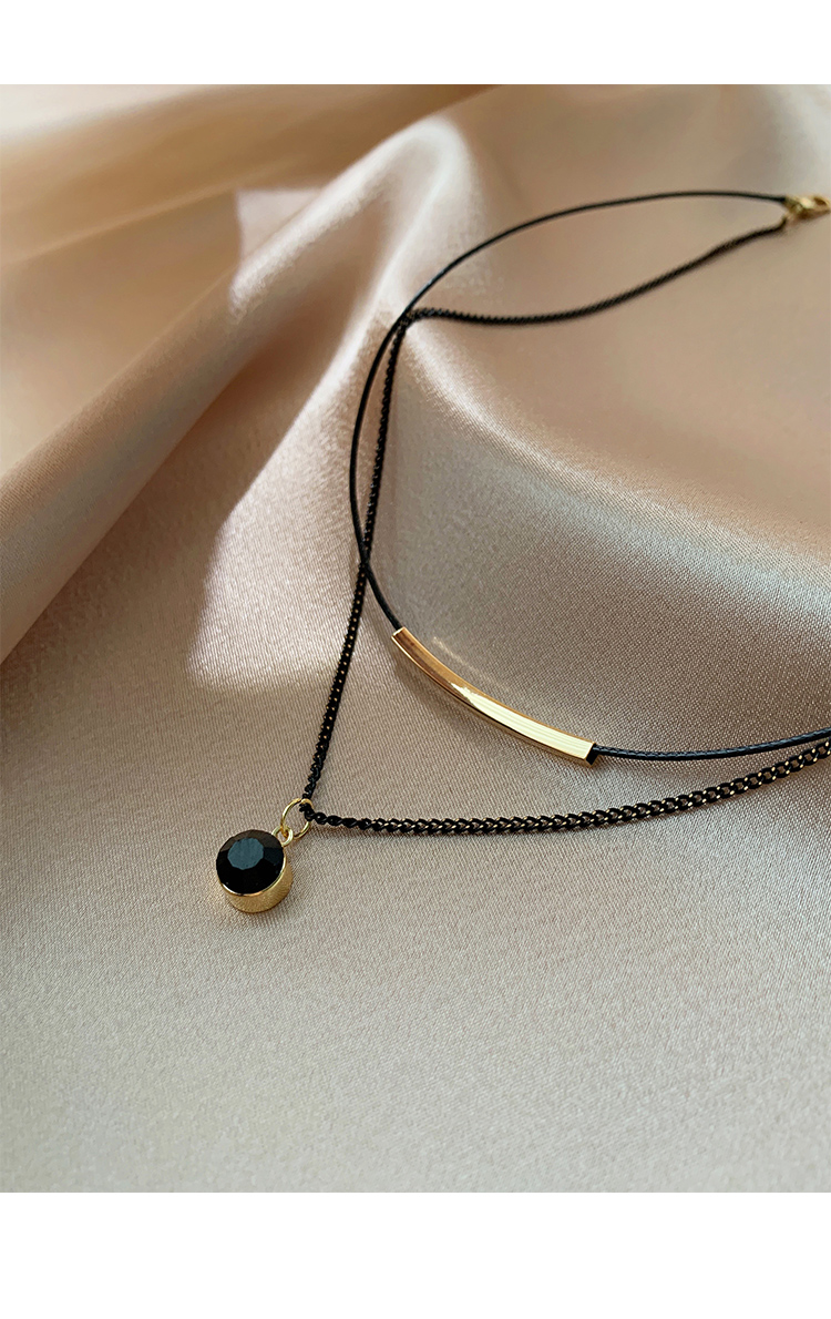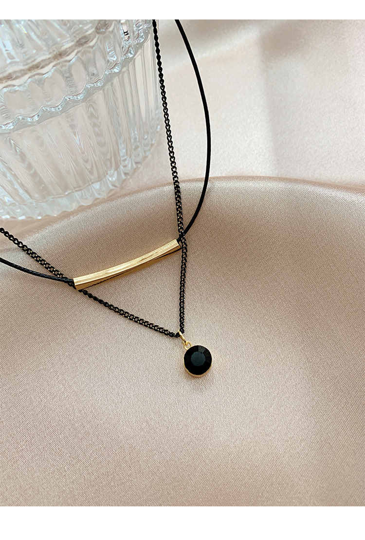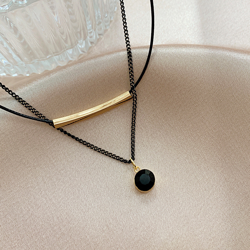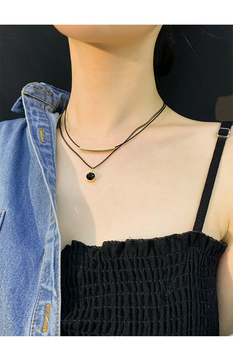 Color: double layer leather rope crystal necklace, double layer leather rope red diamond ball necklace