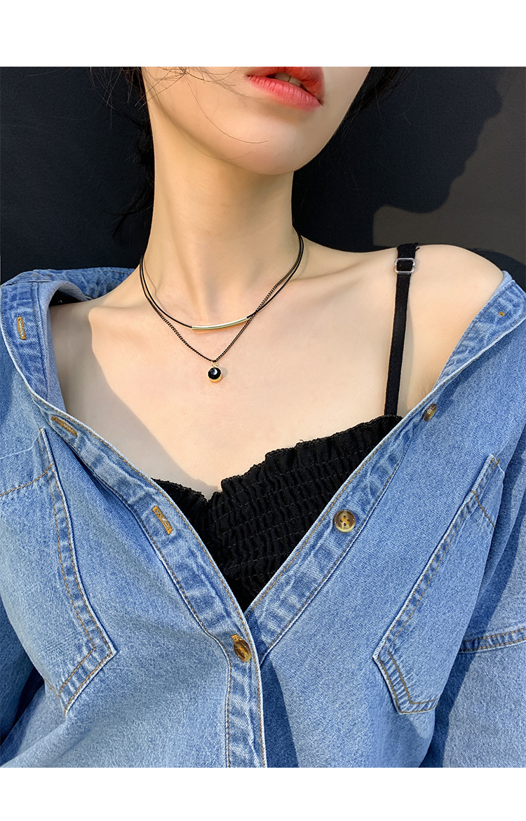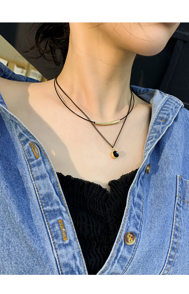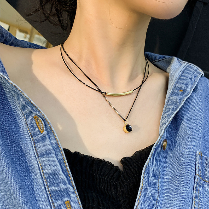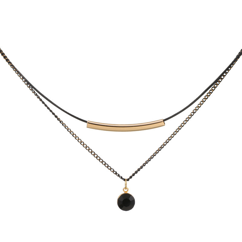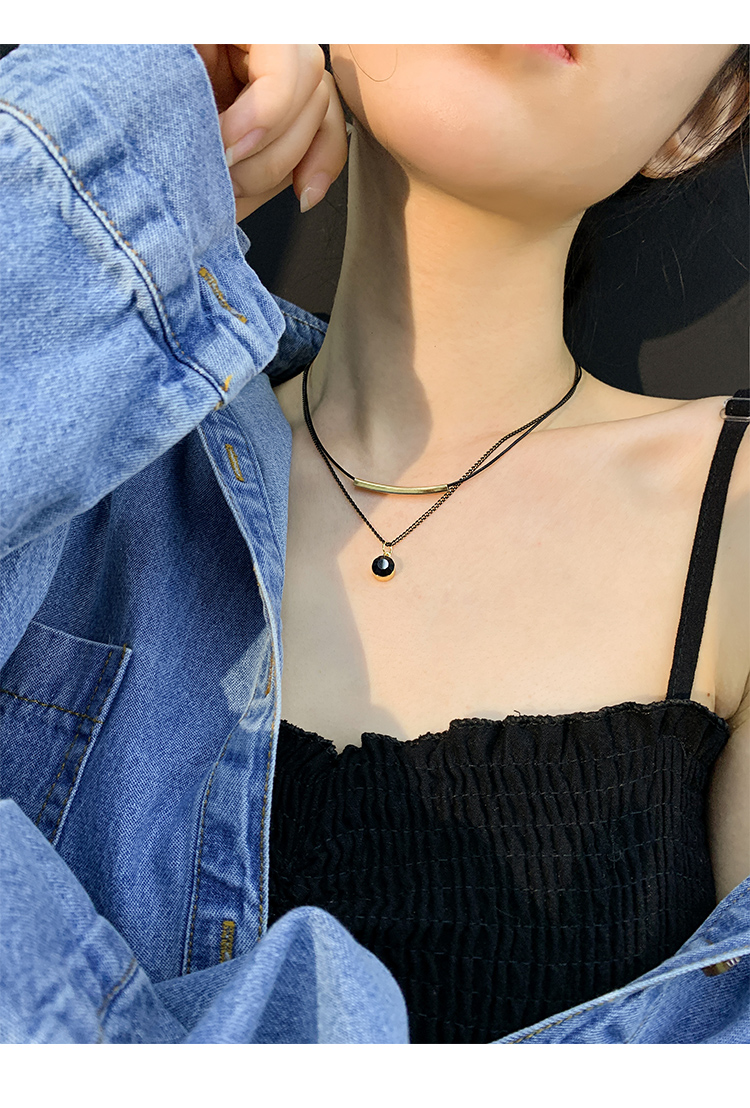 Color: double layer leather rope crystal necklace, double layer leather rope red diamond ball necklace