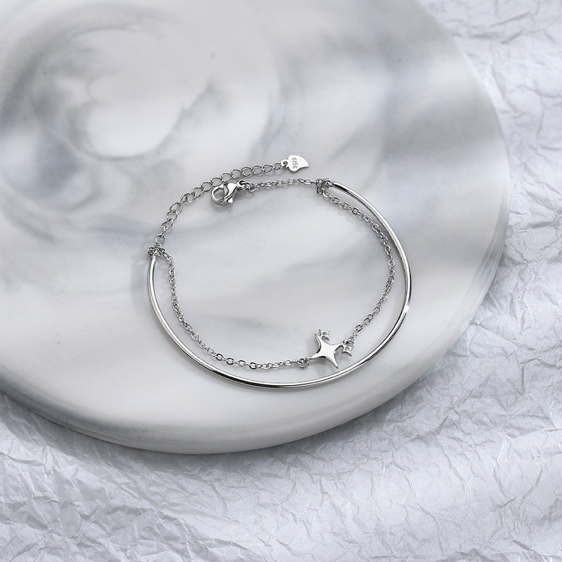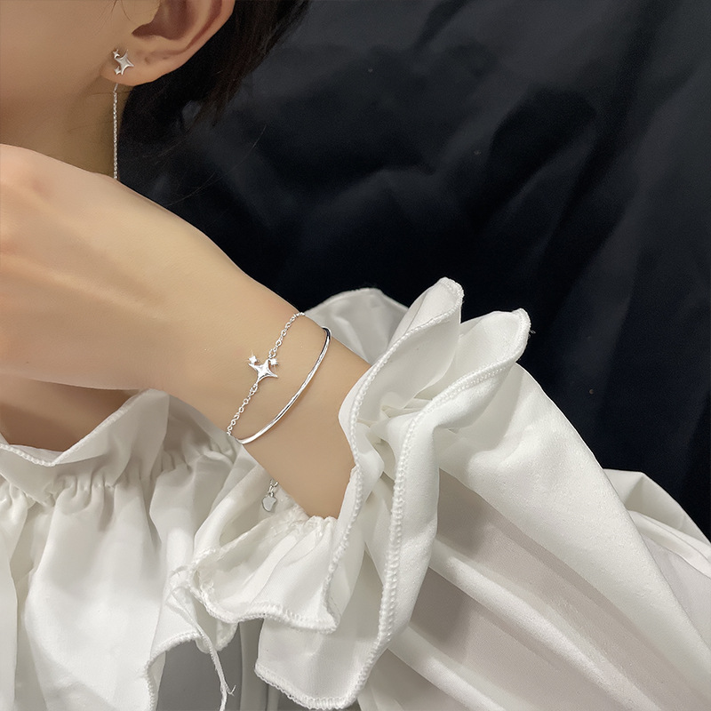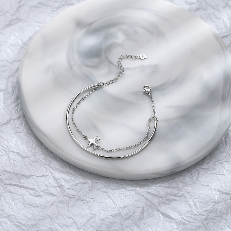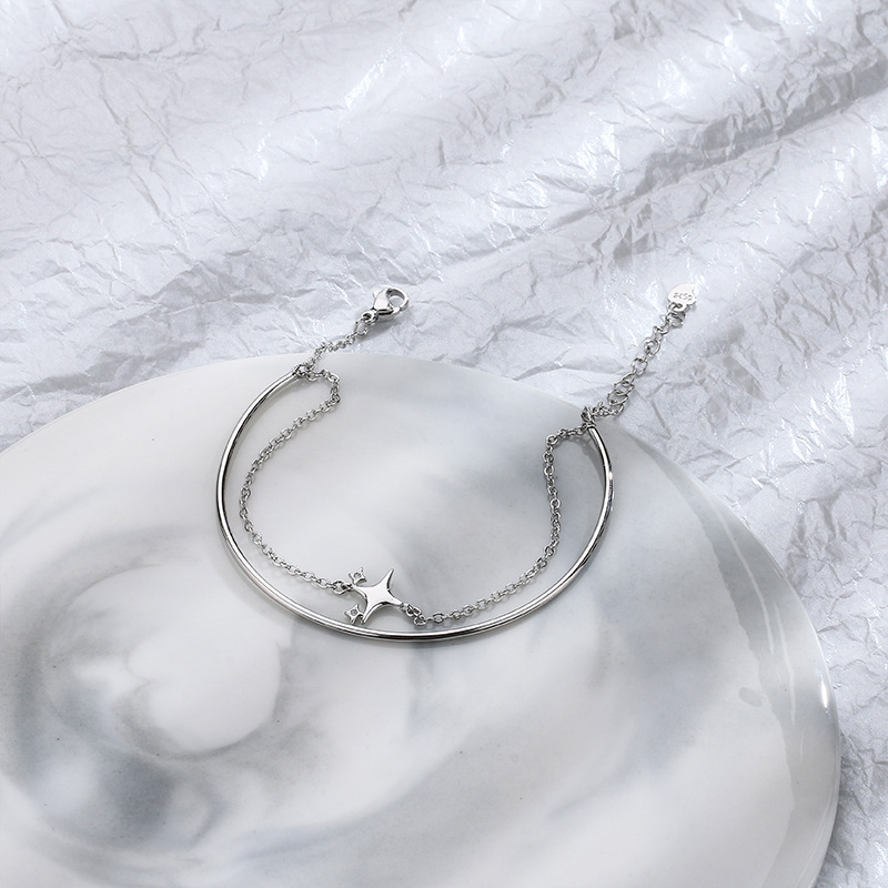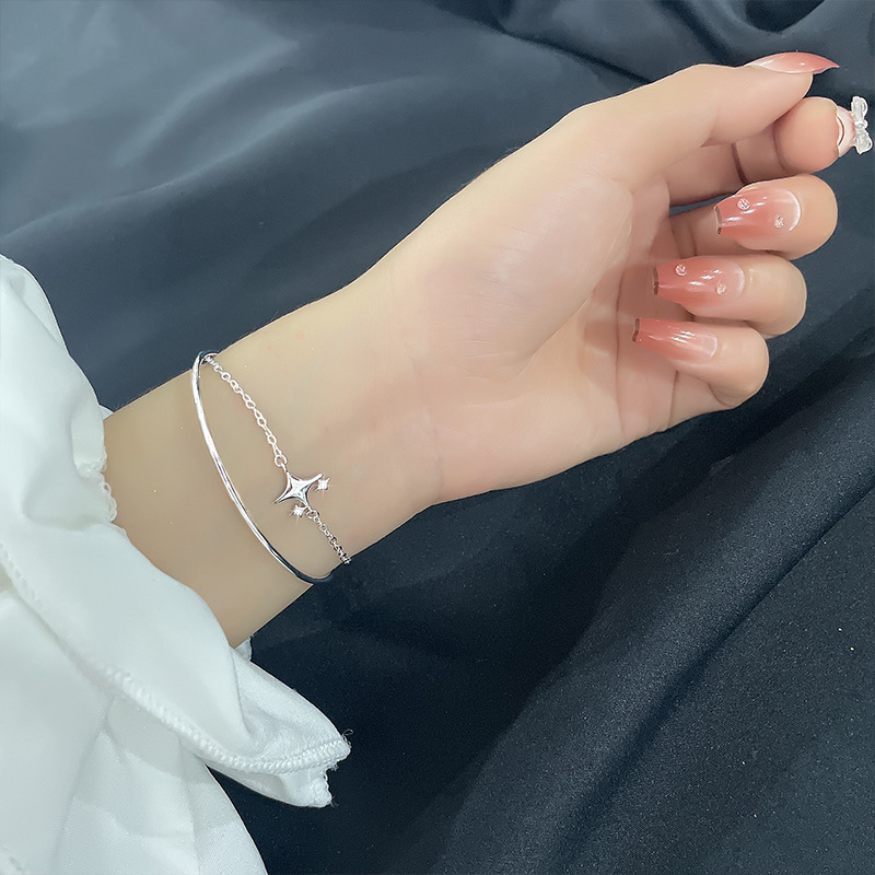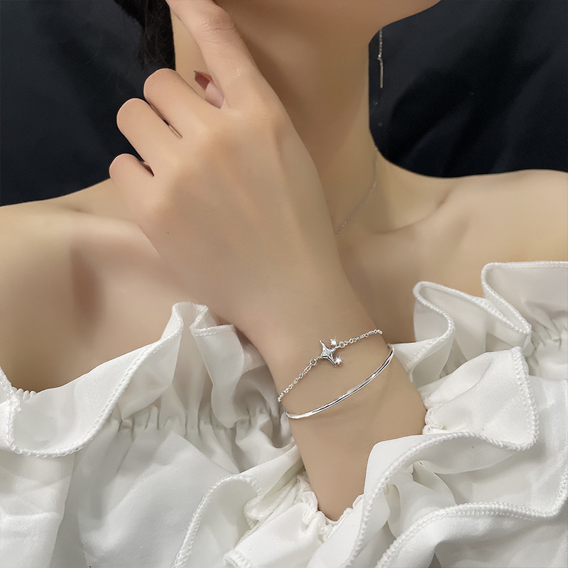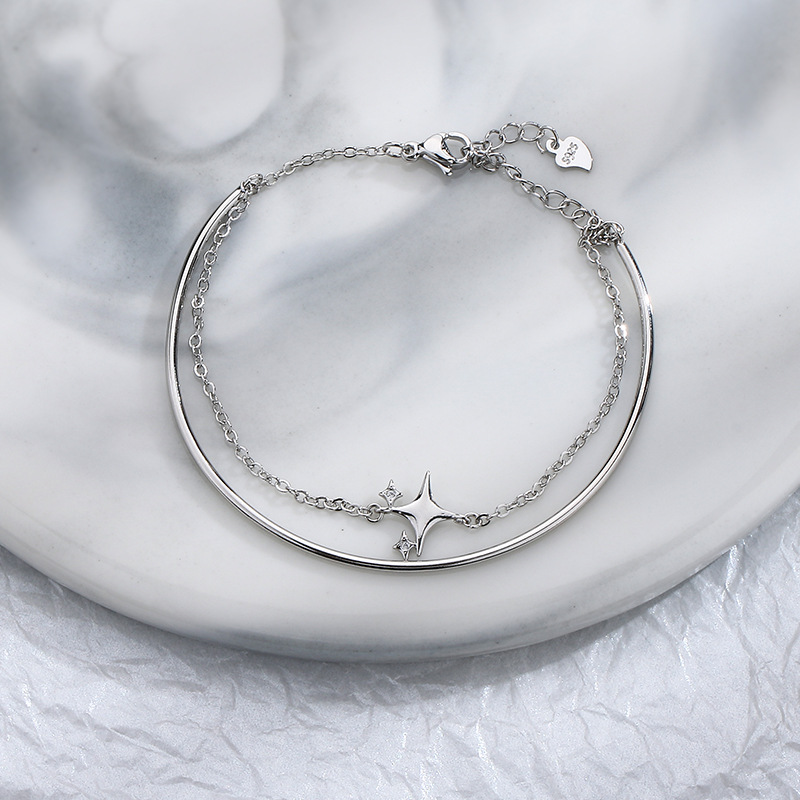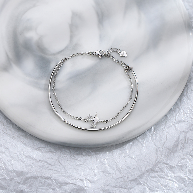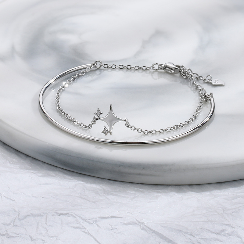 Color: Double-Layer Bracelet with a Zircon Four-Pointed Star