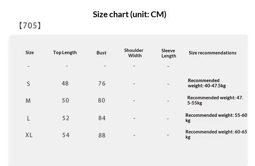 Sizes: S, M, L, XL