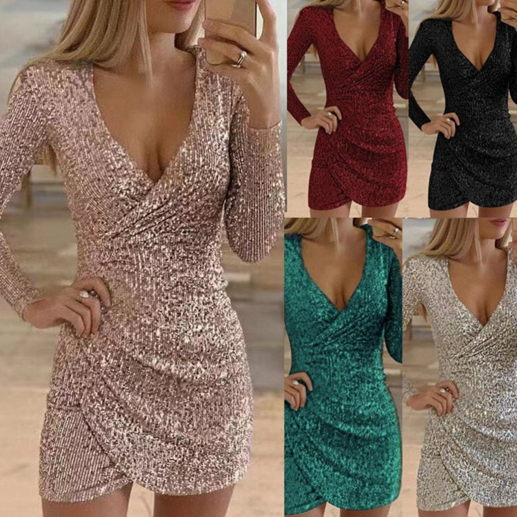 Women's Dress Irregular Sequin Long Sleeve Dress