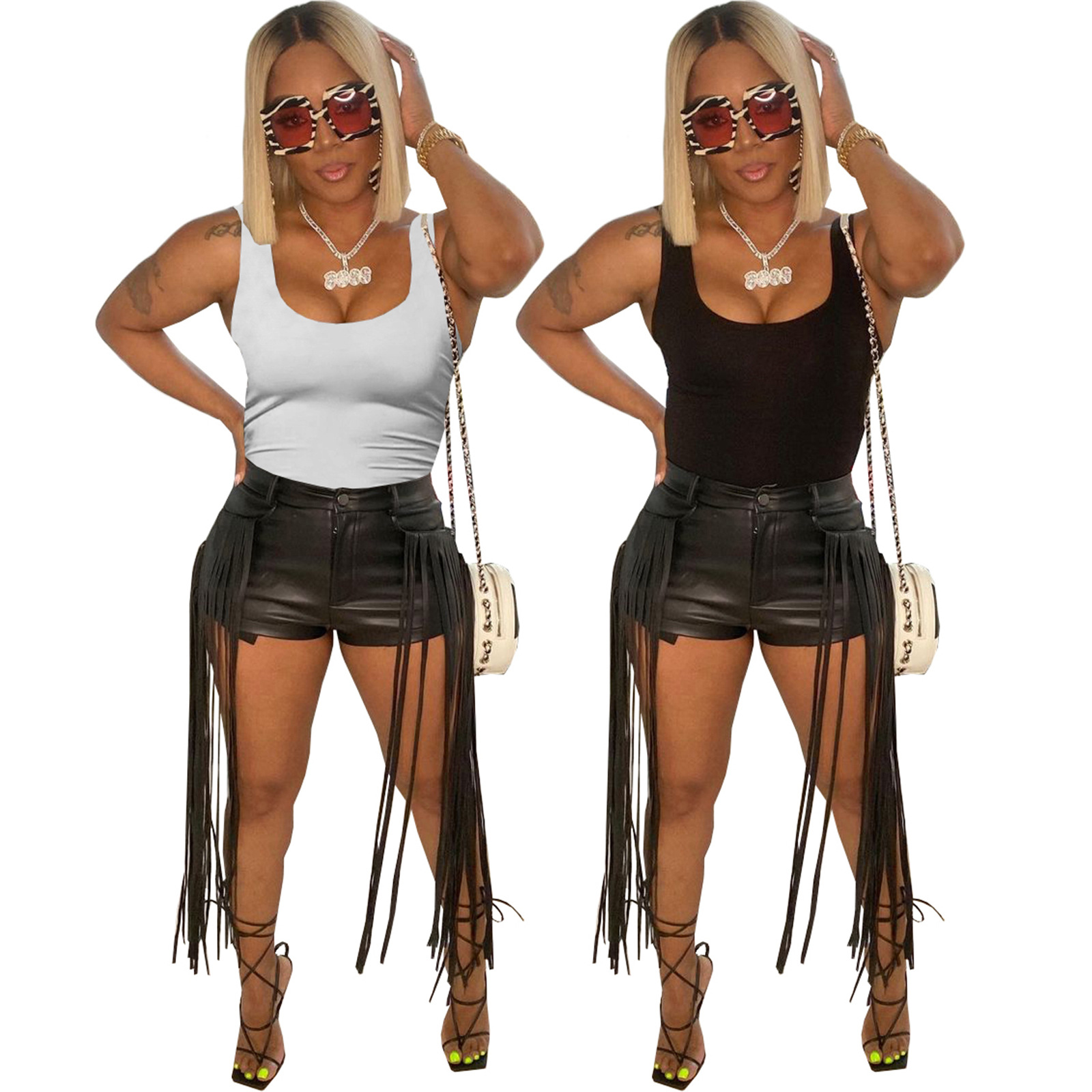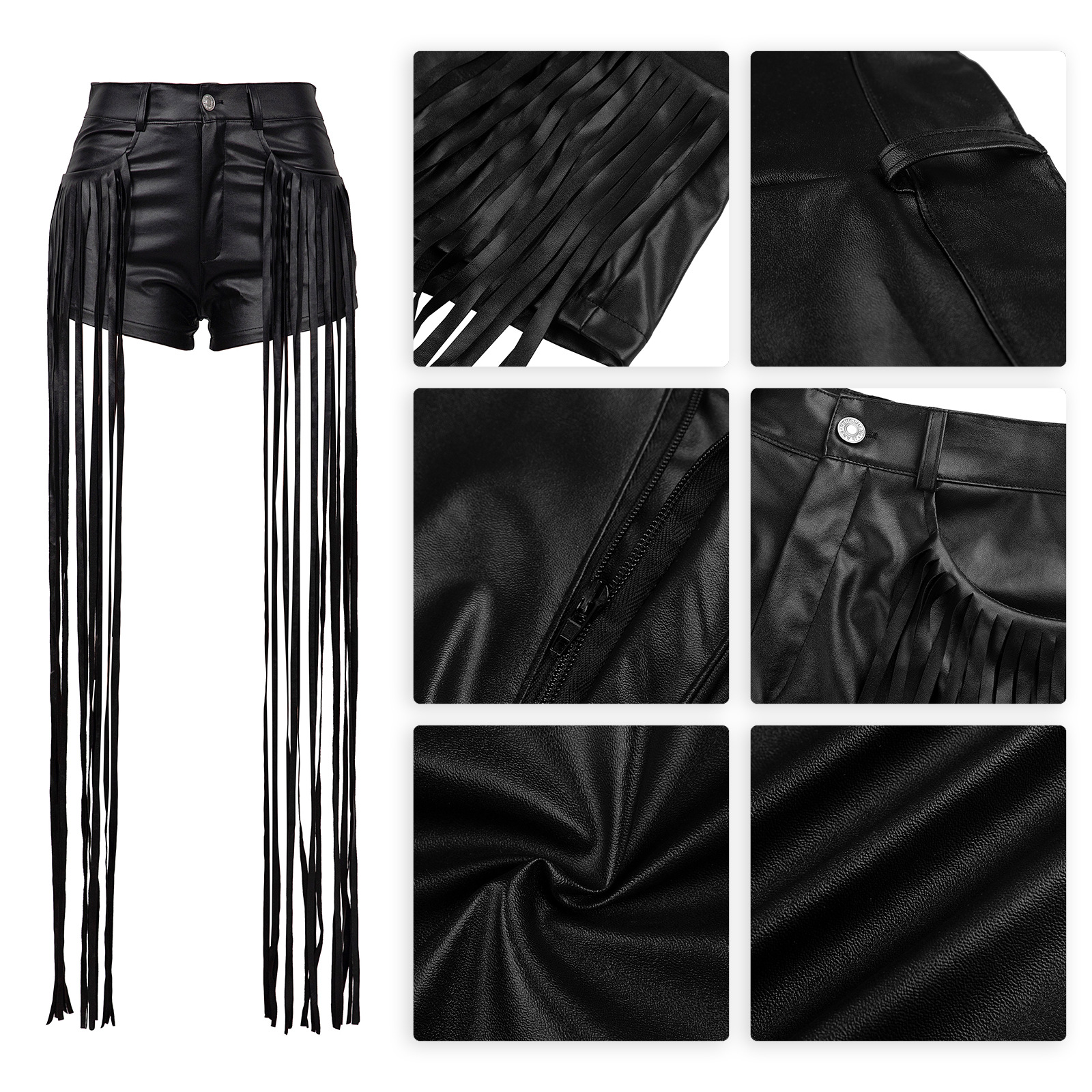 Women's Dunhuang Mandy Clothing PU Leather Pants Fringe Shorts