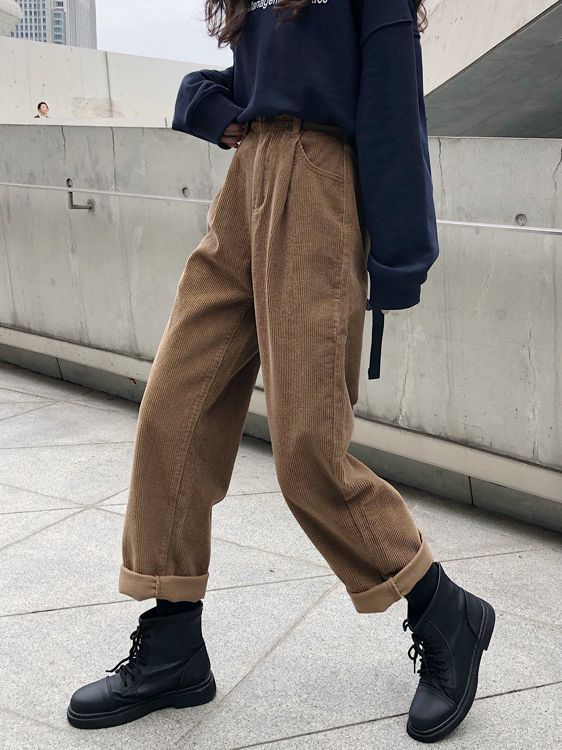 Women's Elastic Waist Corduroy Casual Pants Trousers