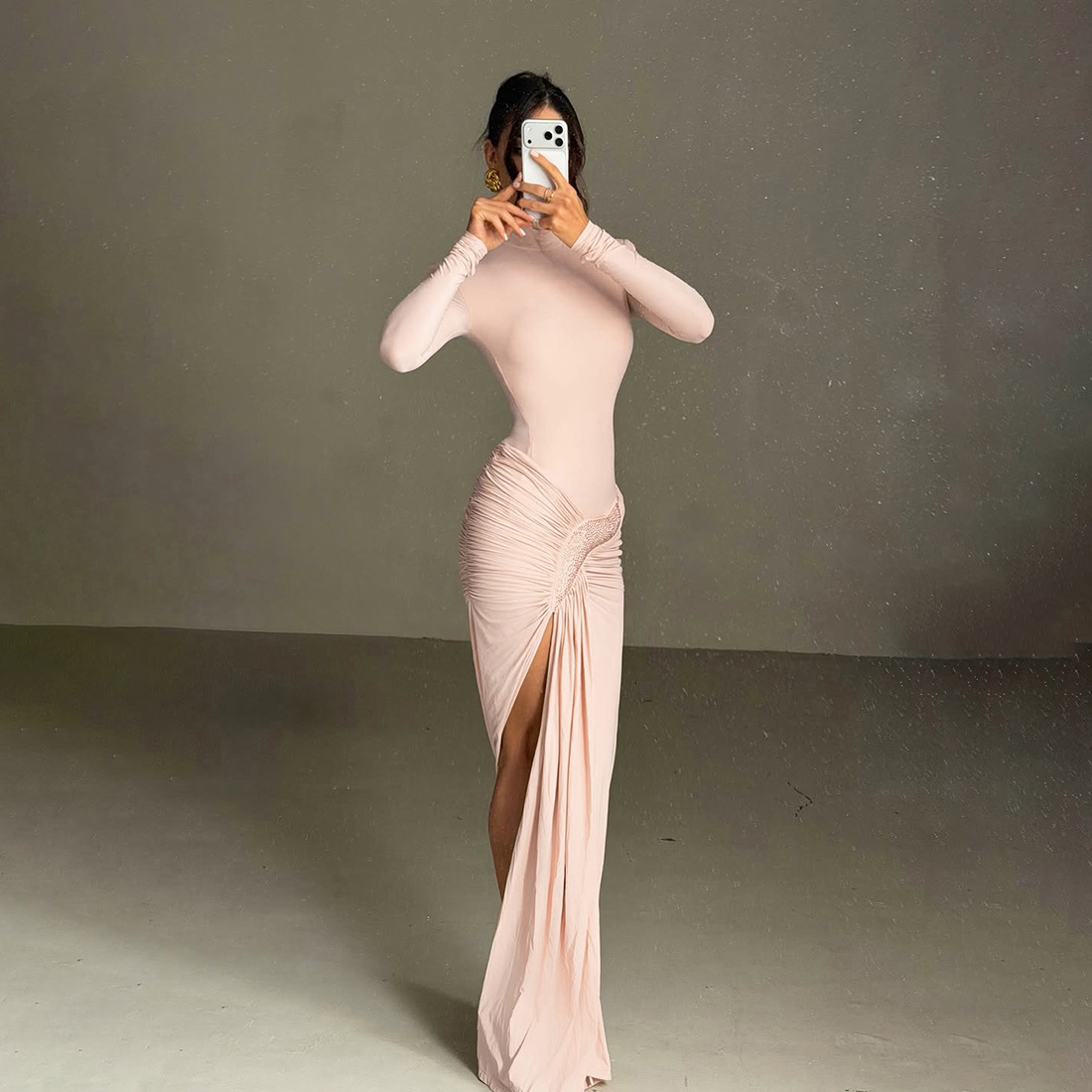 Trendy Elements: Solid Color, Slit, Defined Waist
