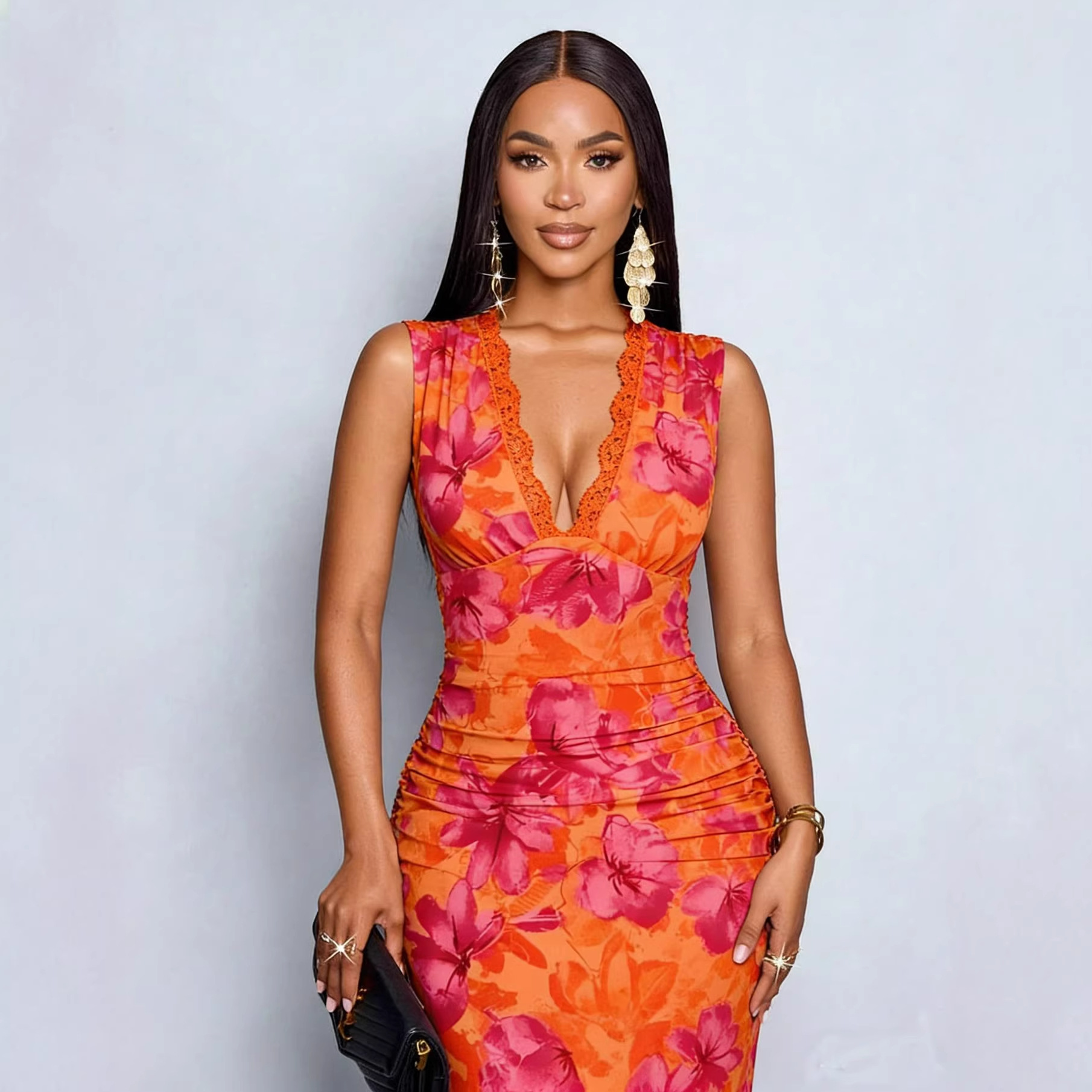 Colors: Tangerine Red, Navy Blue, Khaki Floral Print