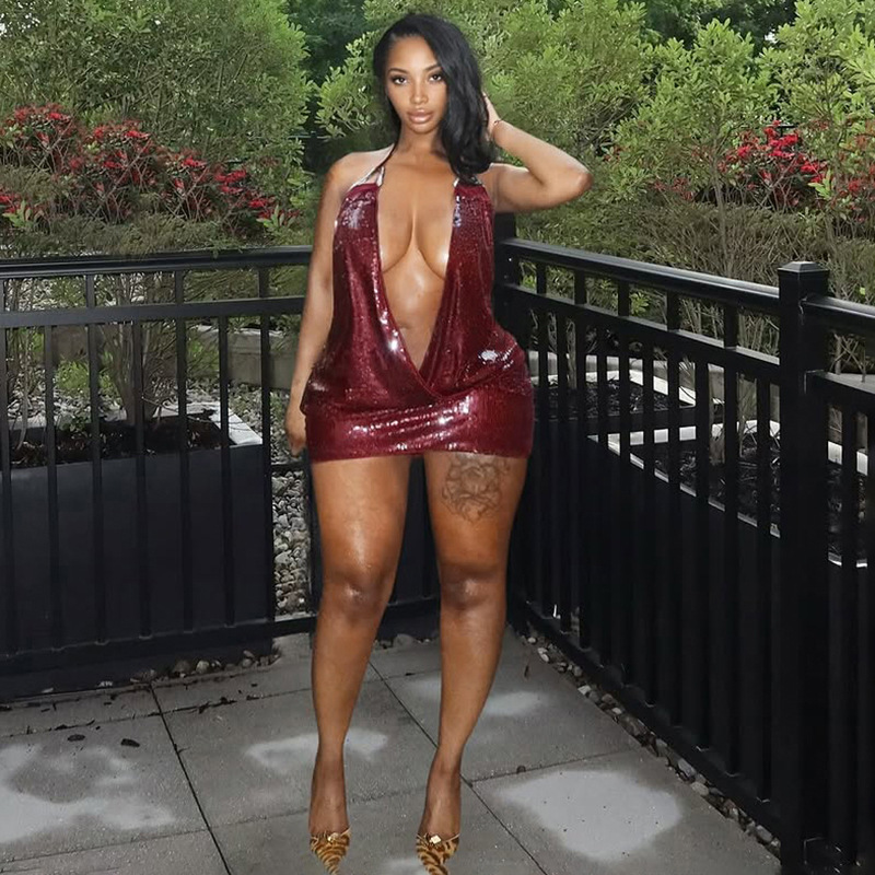 Womens Elegant And Sexy Sequined Backless Dress