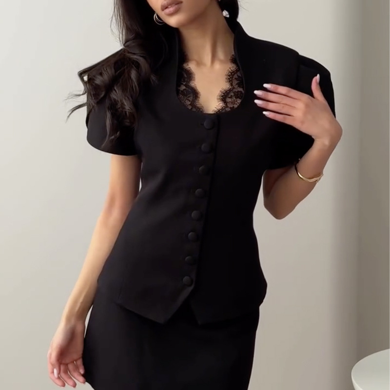 Women's Elegant Button-Front Lace-Patchwork Shirt