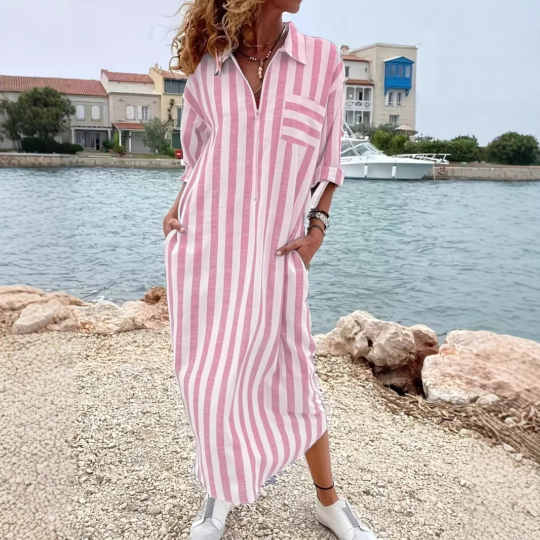 Womens Elegant Casual Loose-Fit Striped Long Shirt Dress