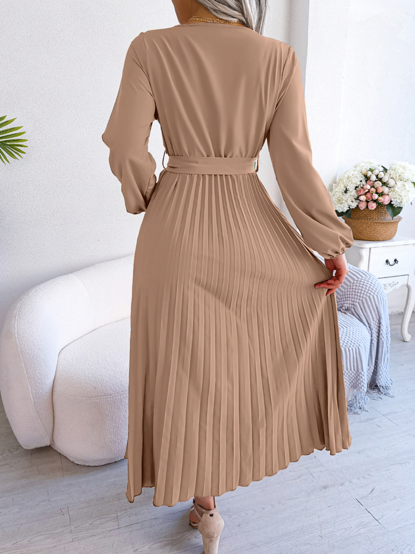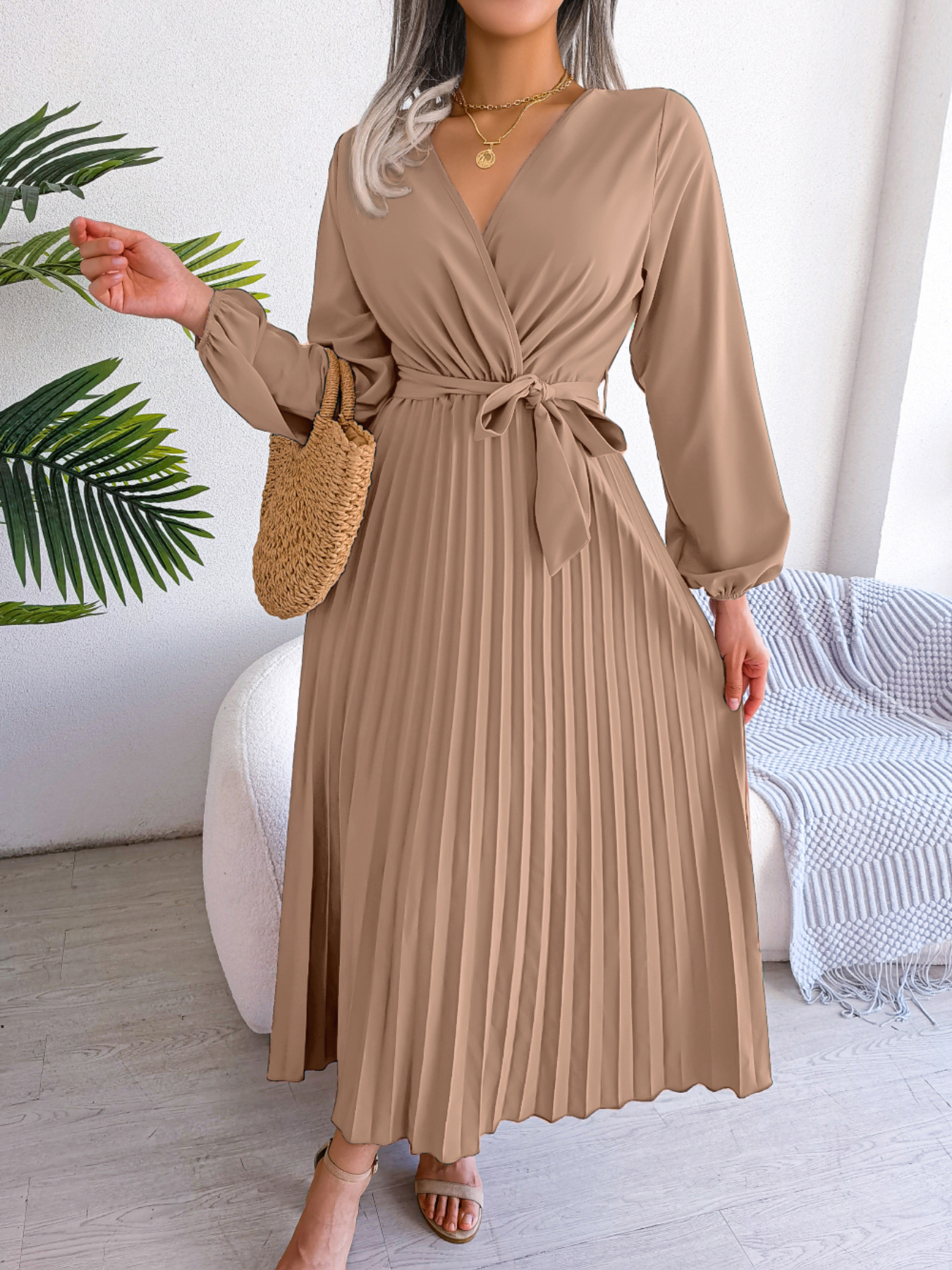 Women's Elegant Cross V Neck Flowy Pleated Maxi Dress