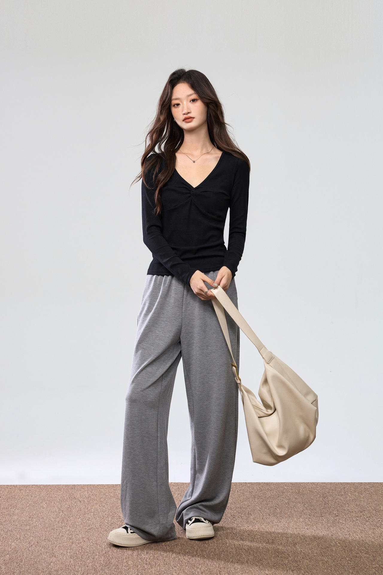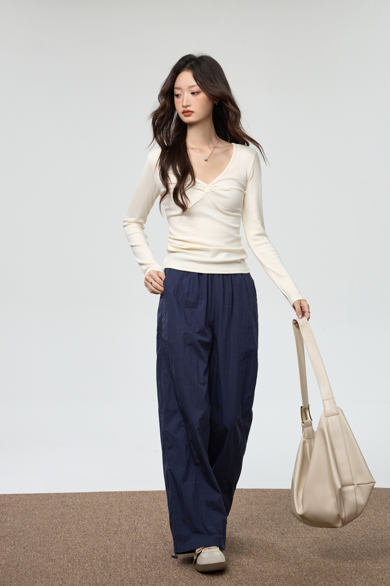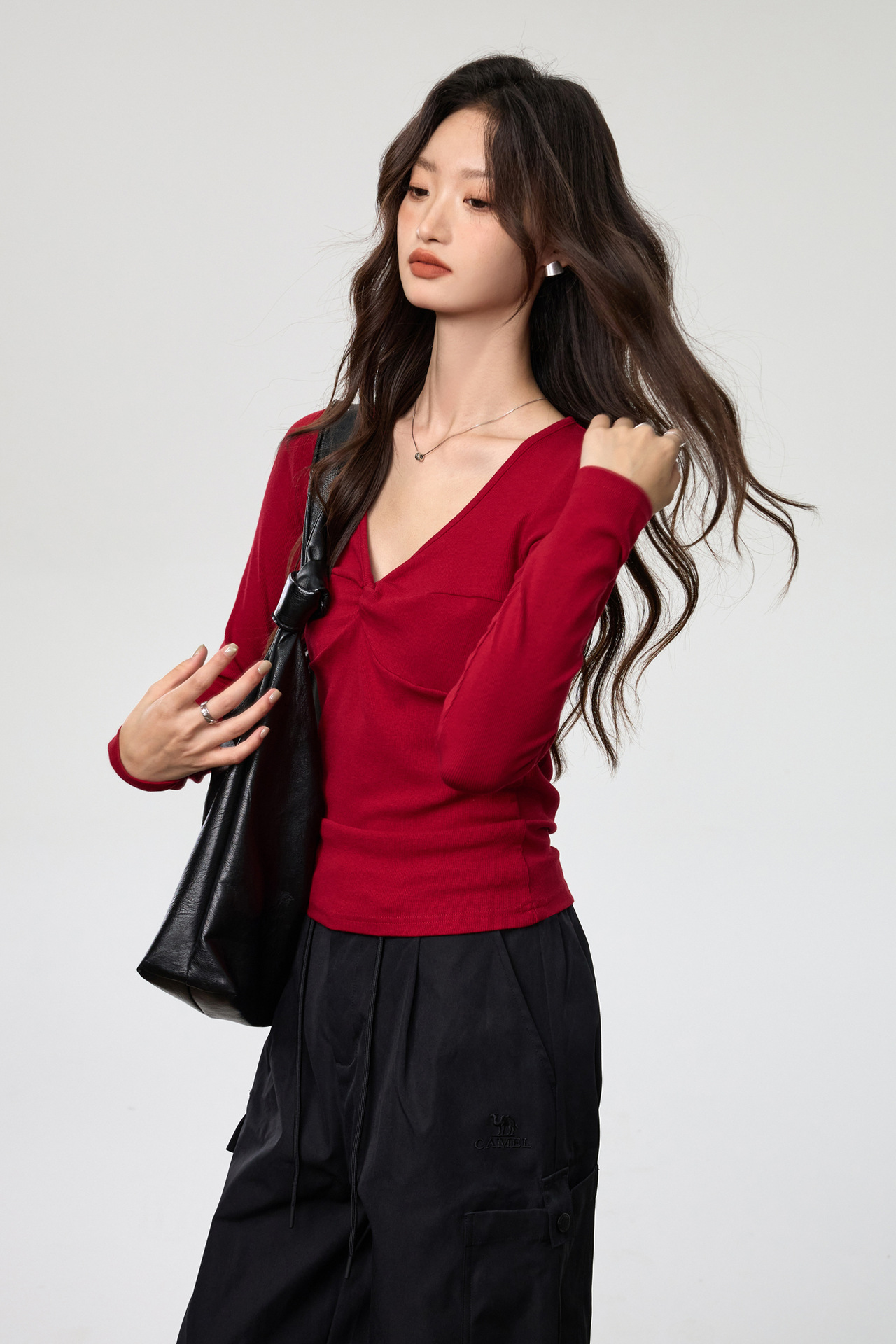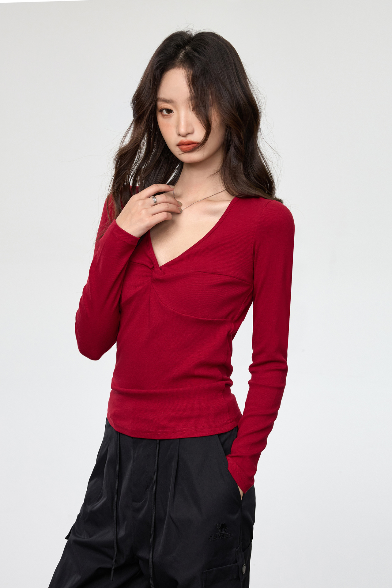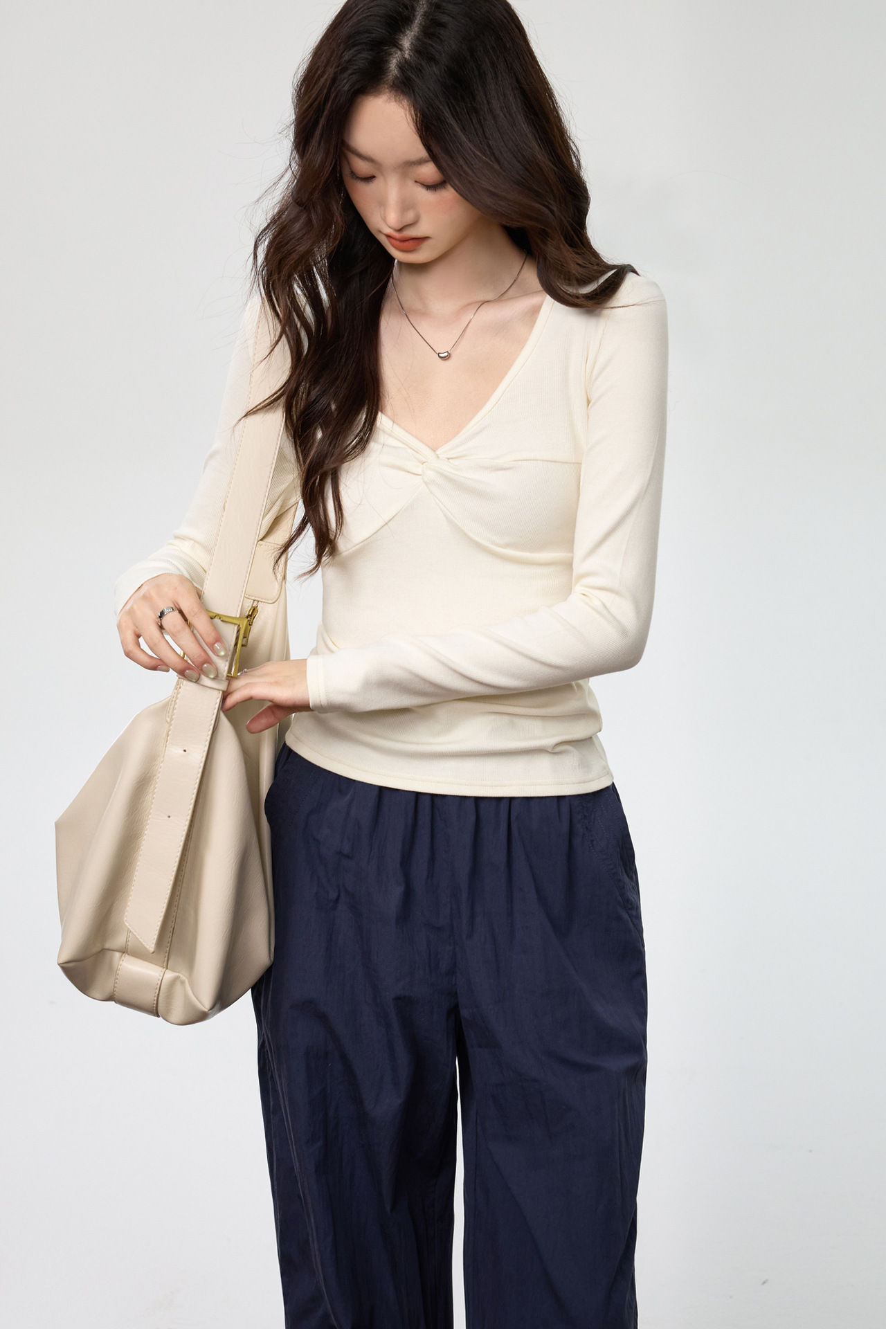 Fashion Elements: V-neck, Solid Color, Bow, Slim