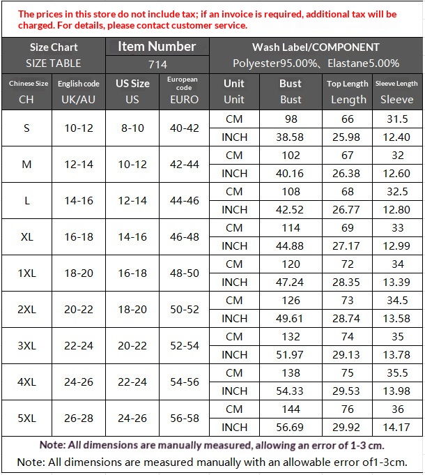 Sizes: S, M, L, XL, 1XL, 2XL, 3XL, 4XL, 5XL.