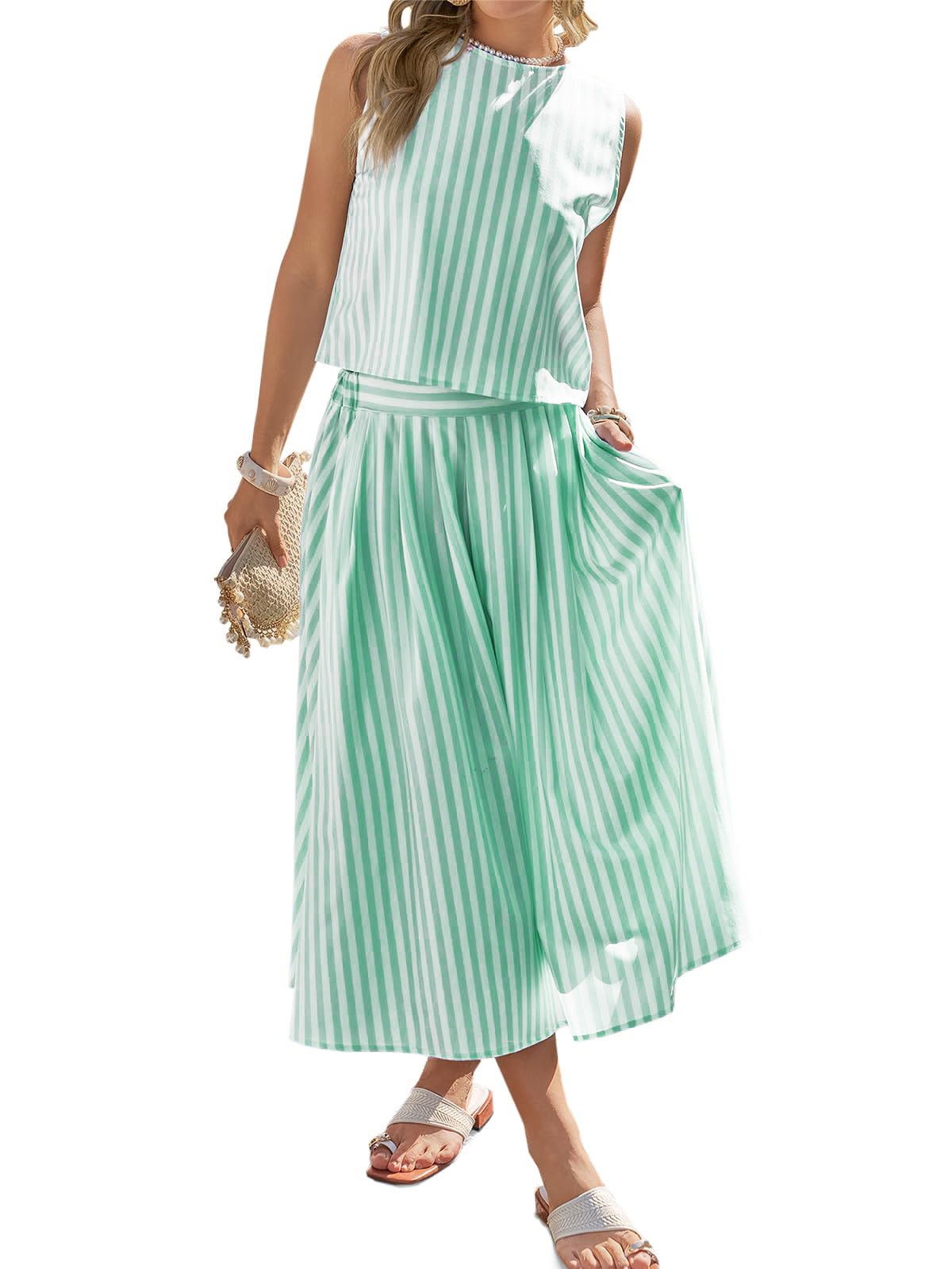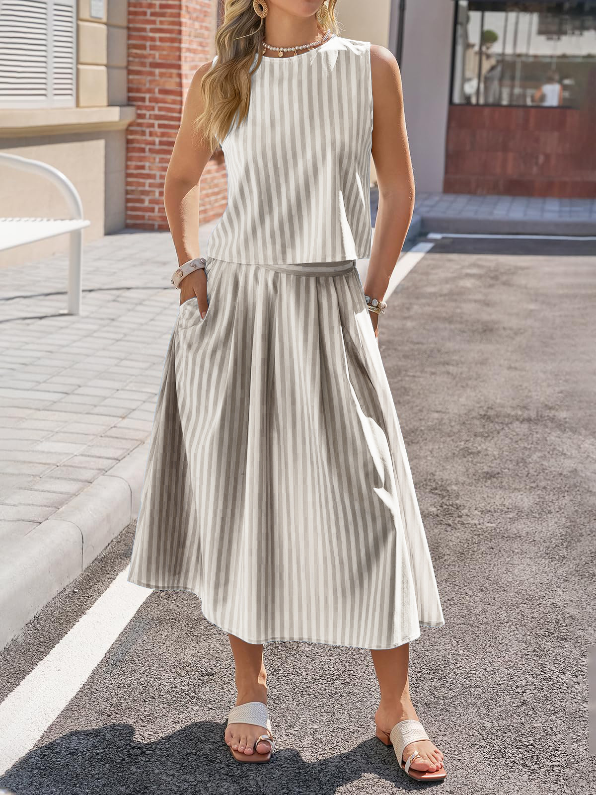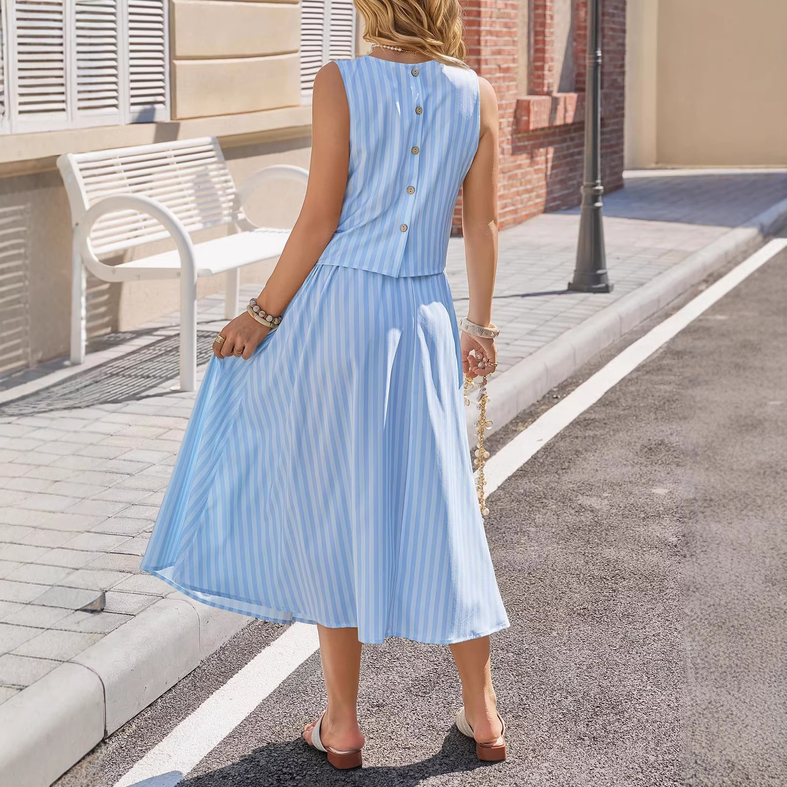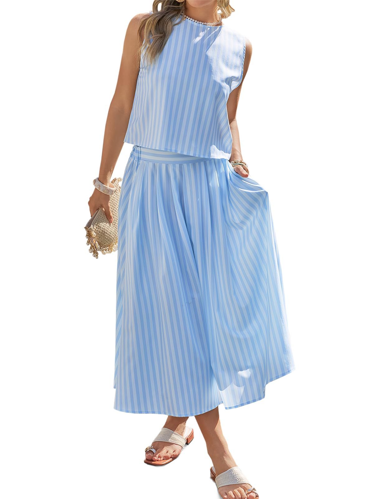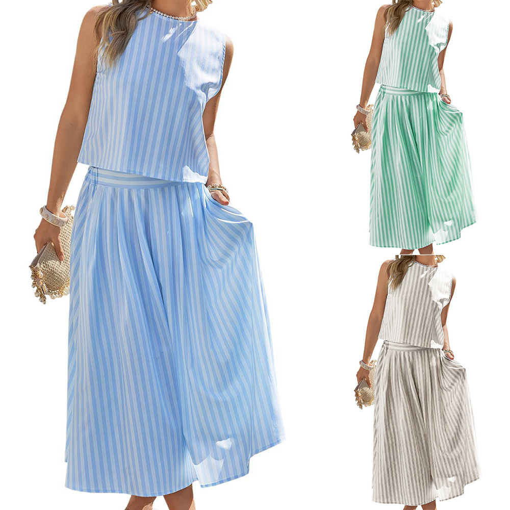 Womens Elegant Striped Vest And A-Line Skirt Two-Piece Set