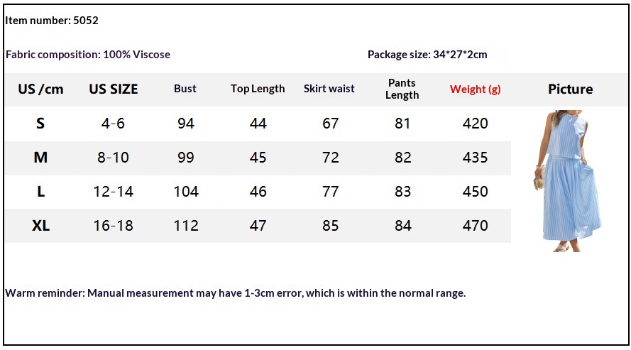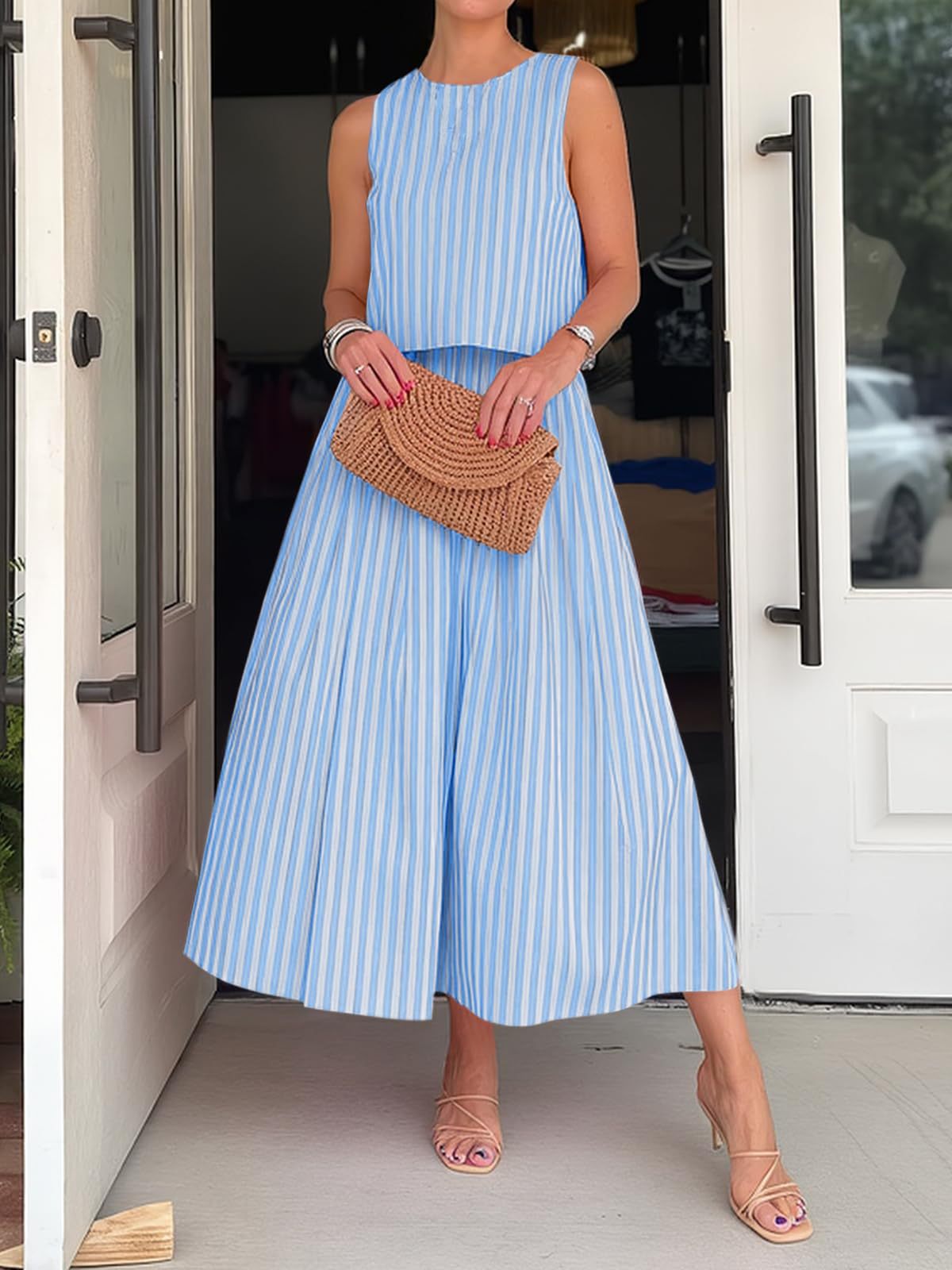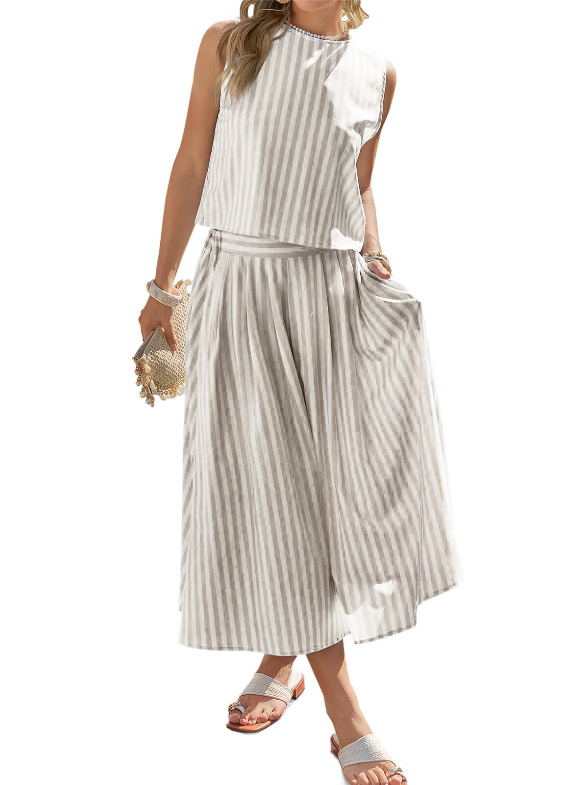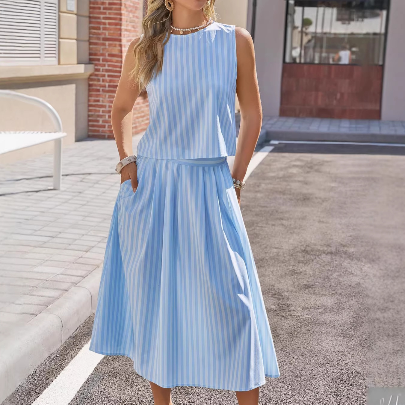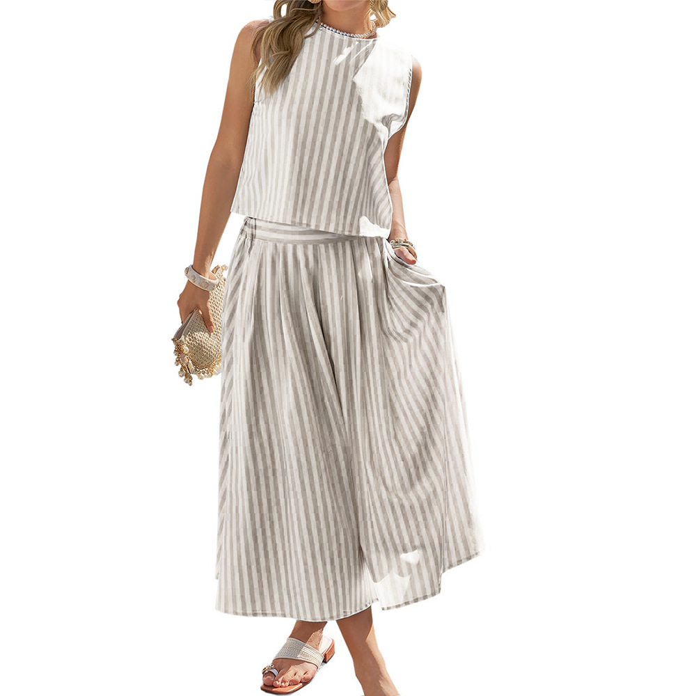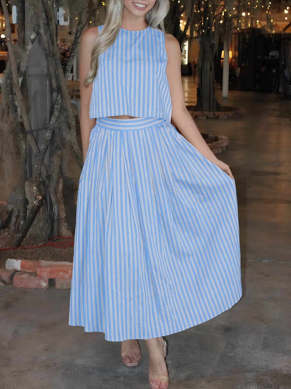 Womens Elegant Striped Vest And A-Line Skirt Two-Piece Set