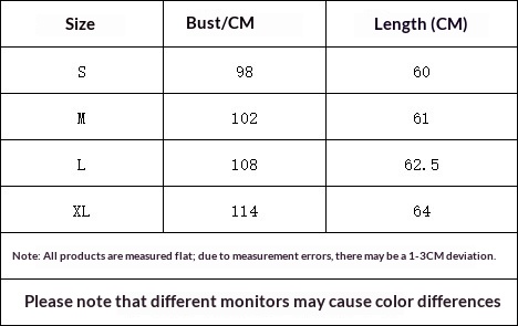 1. Asian sizes are 1 to 2 sizes smaller than European and American people. Choose the larger size if your size between two sizes. Please allow 2-3cm differences due to manual measurement. 2. Please check the size chart carefully before you buy the item, if you don't know how to choose size, please contact our customer service. 3.As you know, the different computers display colors differently, the color of the actual item may vary slightly from the following images.