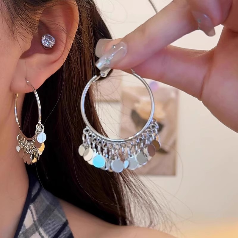 Women's Ethnic Style Sparkling Disc Tassel Earrings