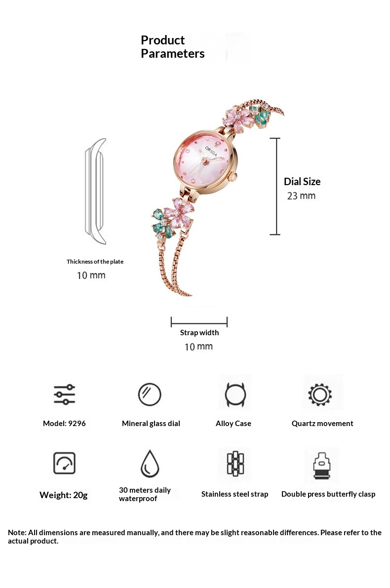 Colors: Green with a green dial, green with a white dial, purple, sapphire blue, burgundy, pink