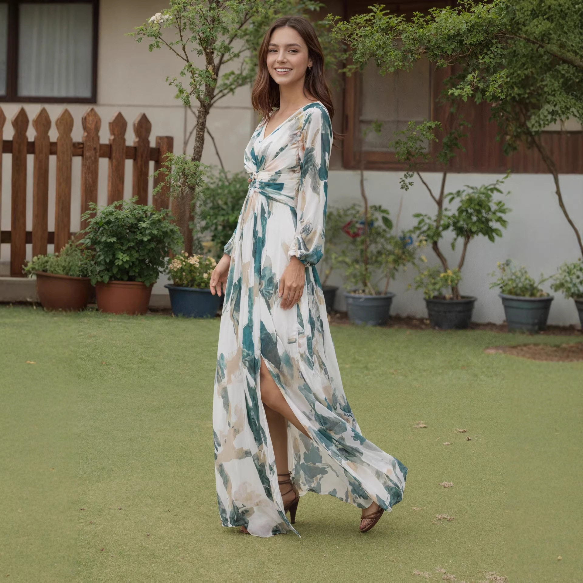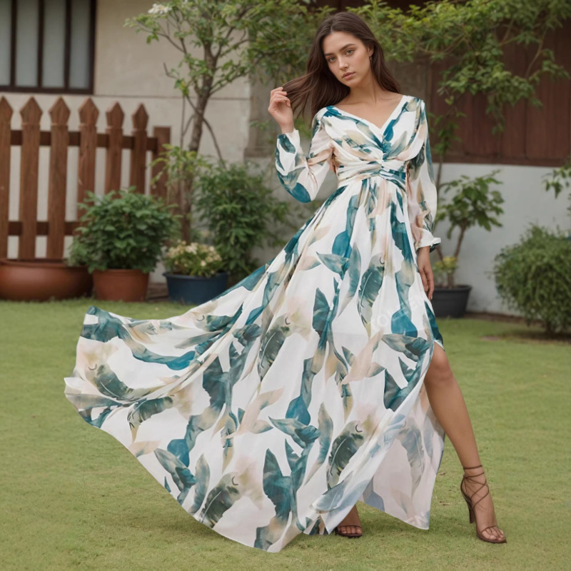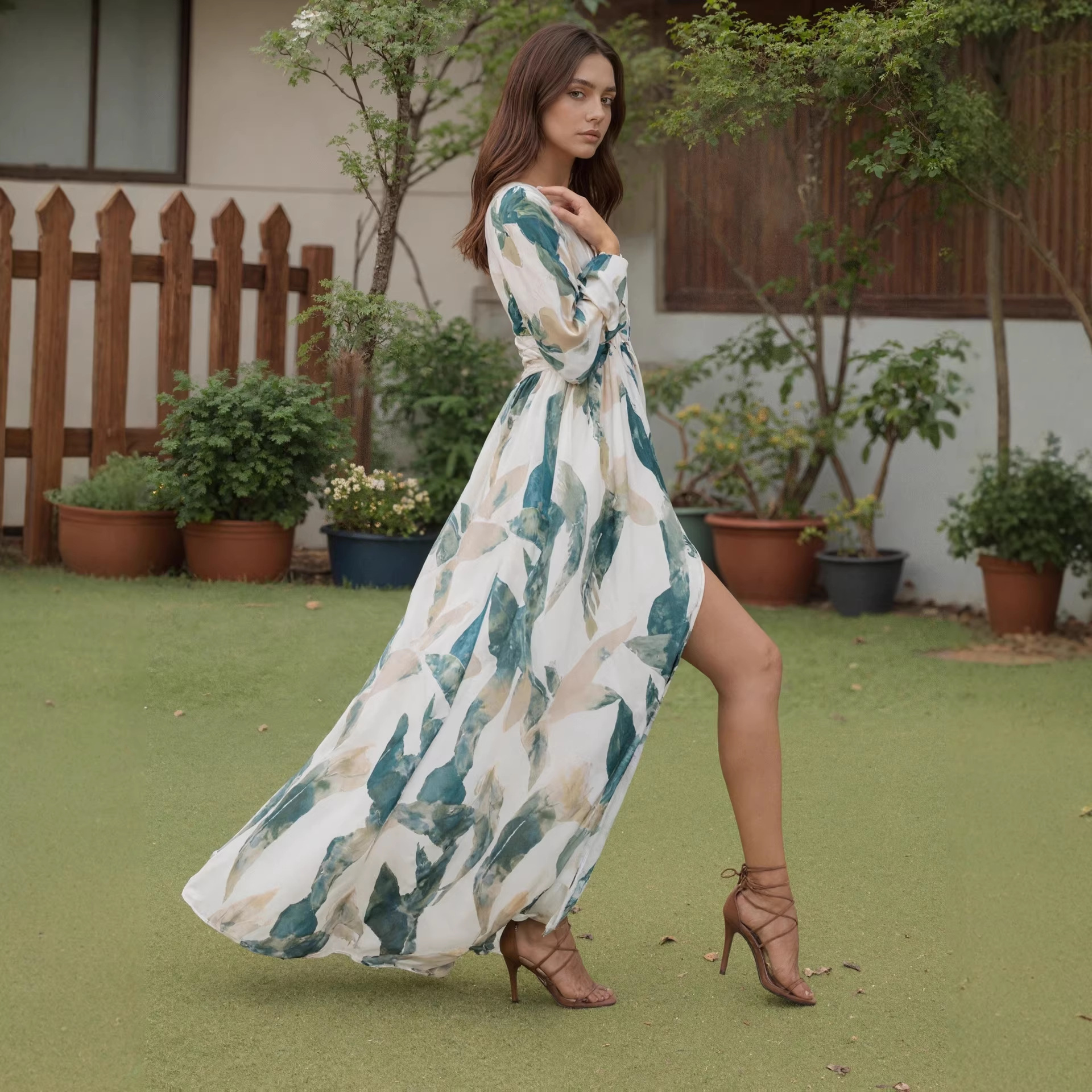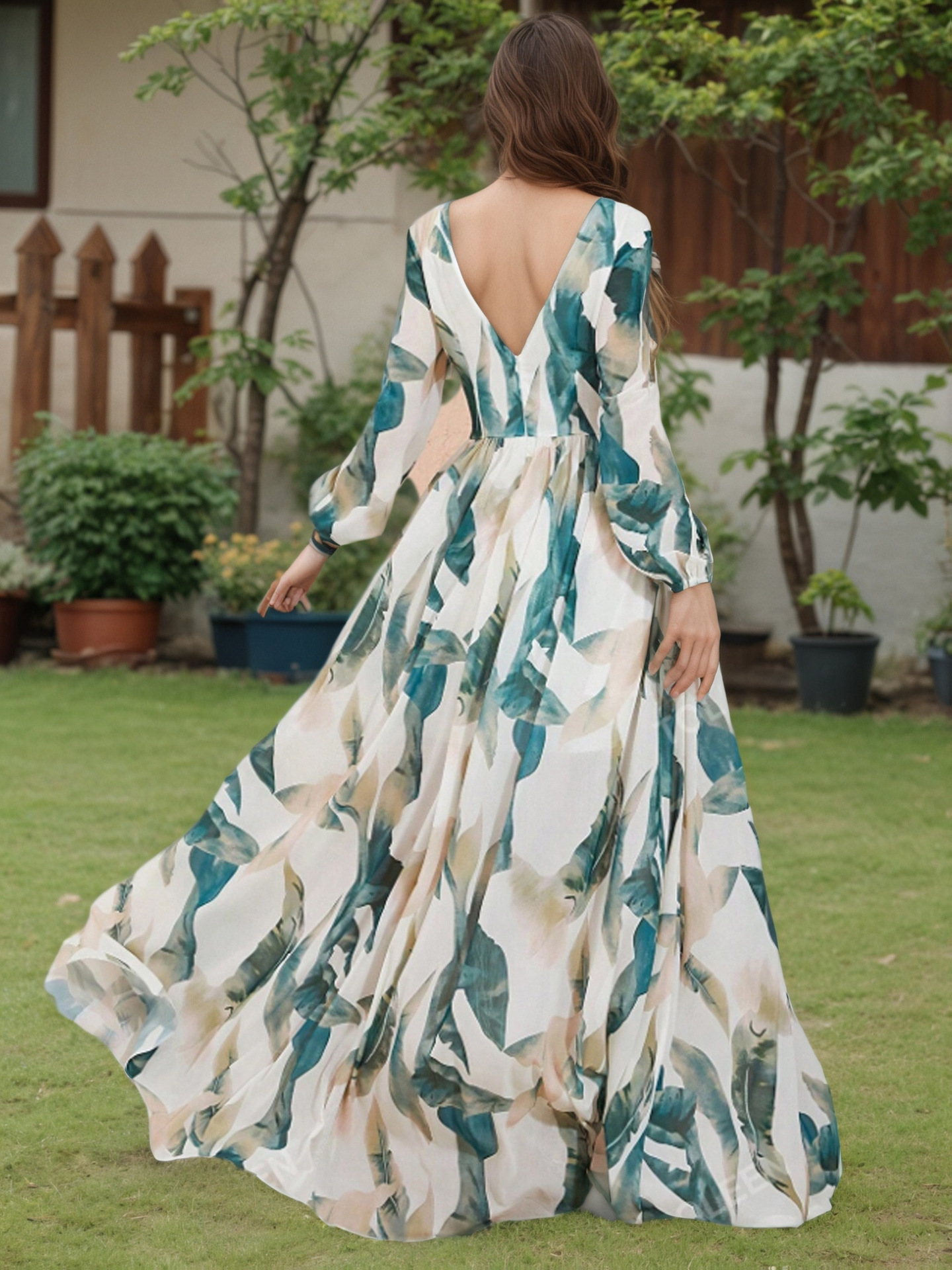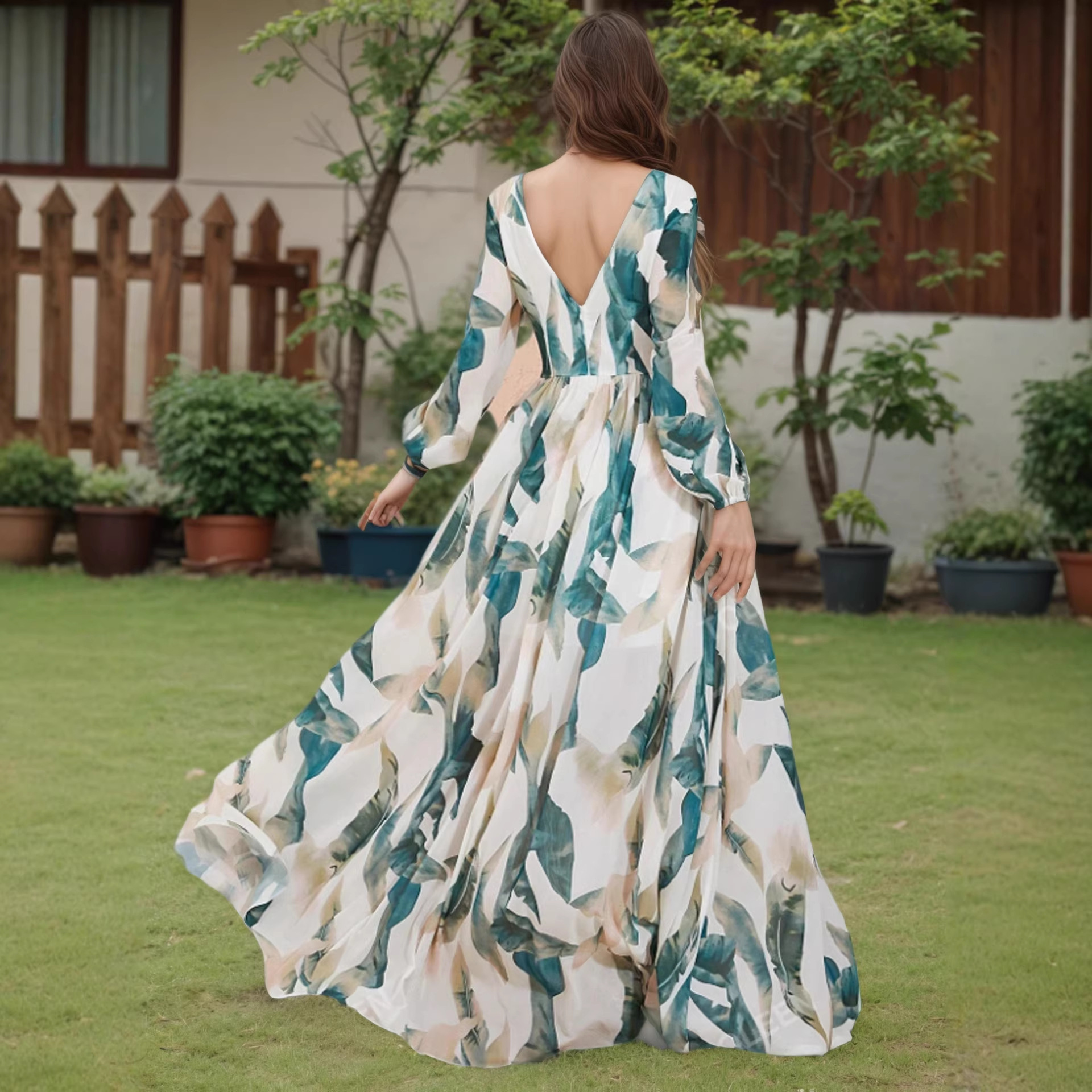Womens Fashion Backless Long-sleeve Dress
