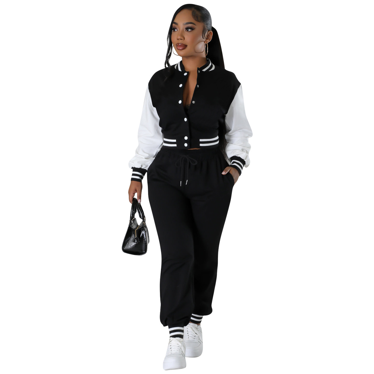 Women's Fashion Baseball Uniform Stitching Single-breasted Two-piece Suit