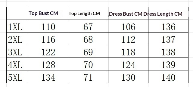 Size: 1XL, 2XL, 3XL, 4XL, 5XL