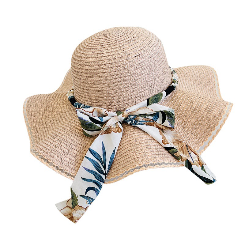 Product category: sun hat Applicable gender: female Material: Straw Style: wild Weaving method: warp knitting Processing method: tie-dye Popular elements: bows Hat style: dome Hat brim style: big brim Color: Khaki, Pink, Navy, Beige, Cream Size: M (56-58cm)