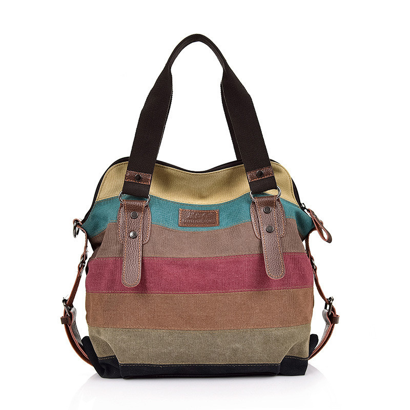 Women's Fashion Casual Large Capacity Rainbow Patchwork Handbag
