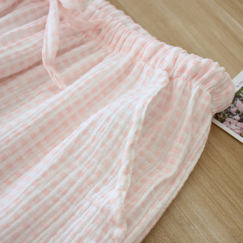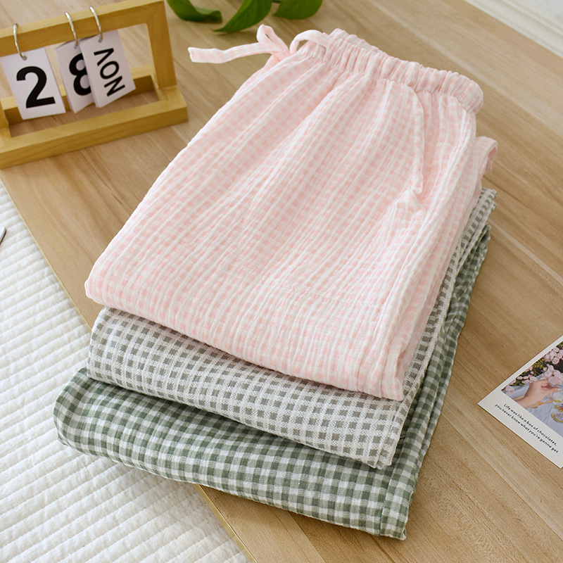 Color: pink plaid trousers, green plaid trousers, gray plaid trousers
