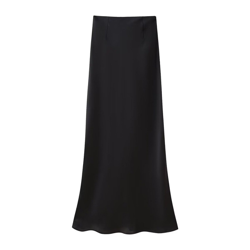 Women's Fashion Casual Pure Color All-matching High Waist Satin Skirt