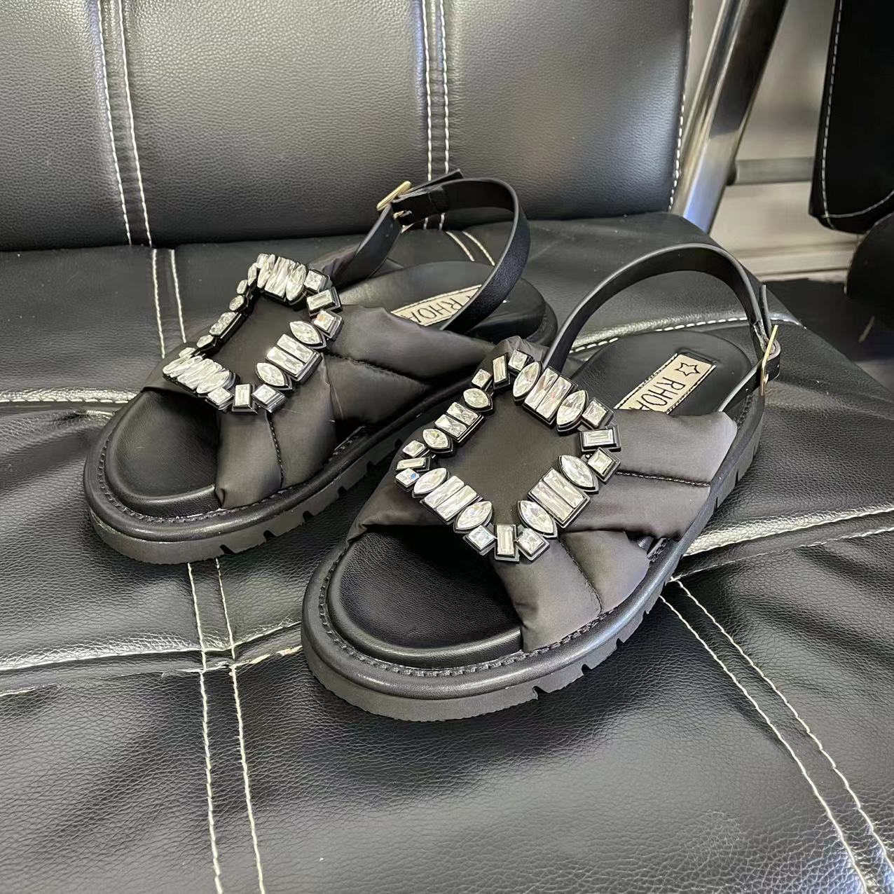 Women's Fashion Casual Rhinestone Square Buckle Flat Sandals