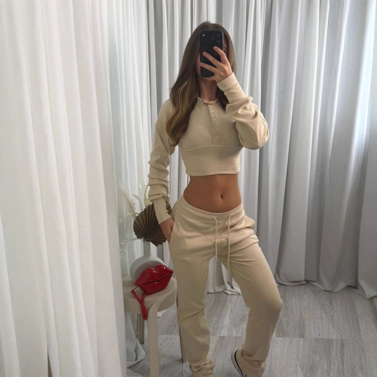 Women's Fashion Casual Set Tight Short Top And Straight-Leg Pants
