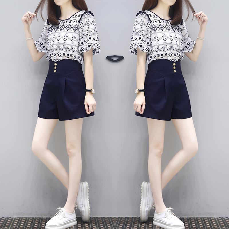 Women's Fashion Casual Short-sleeve Top And Pants Set