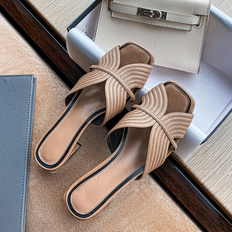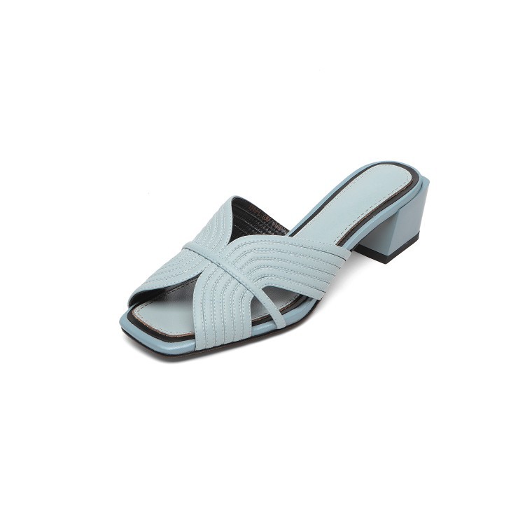 Women's Fashion Chunky Heel Leather Sandals
