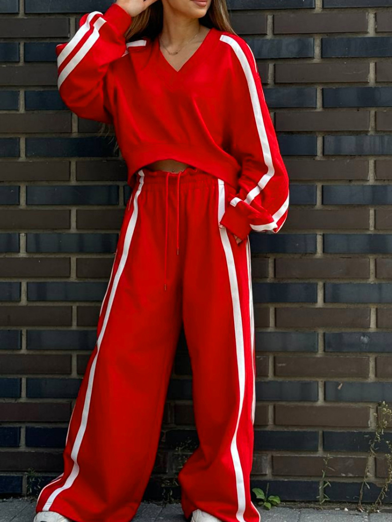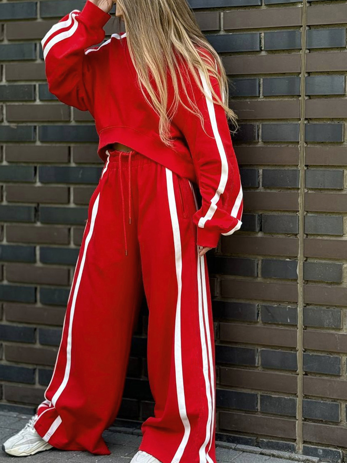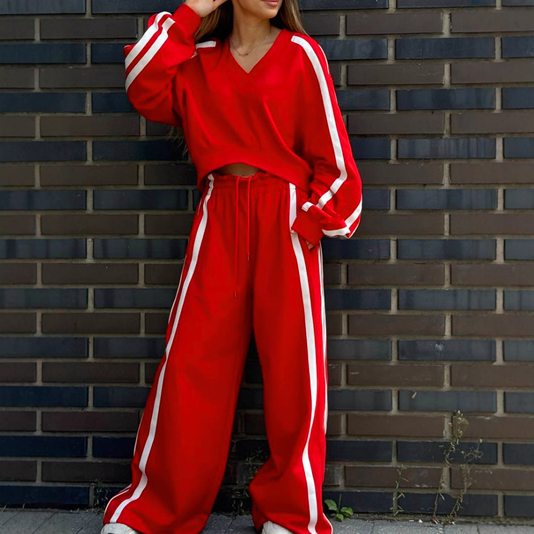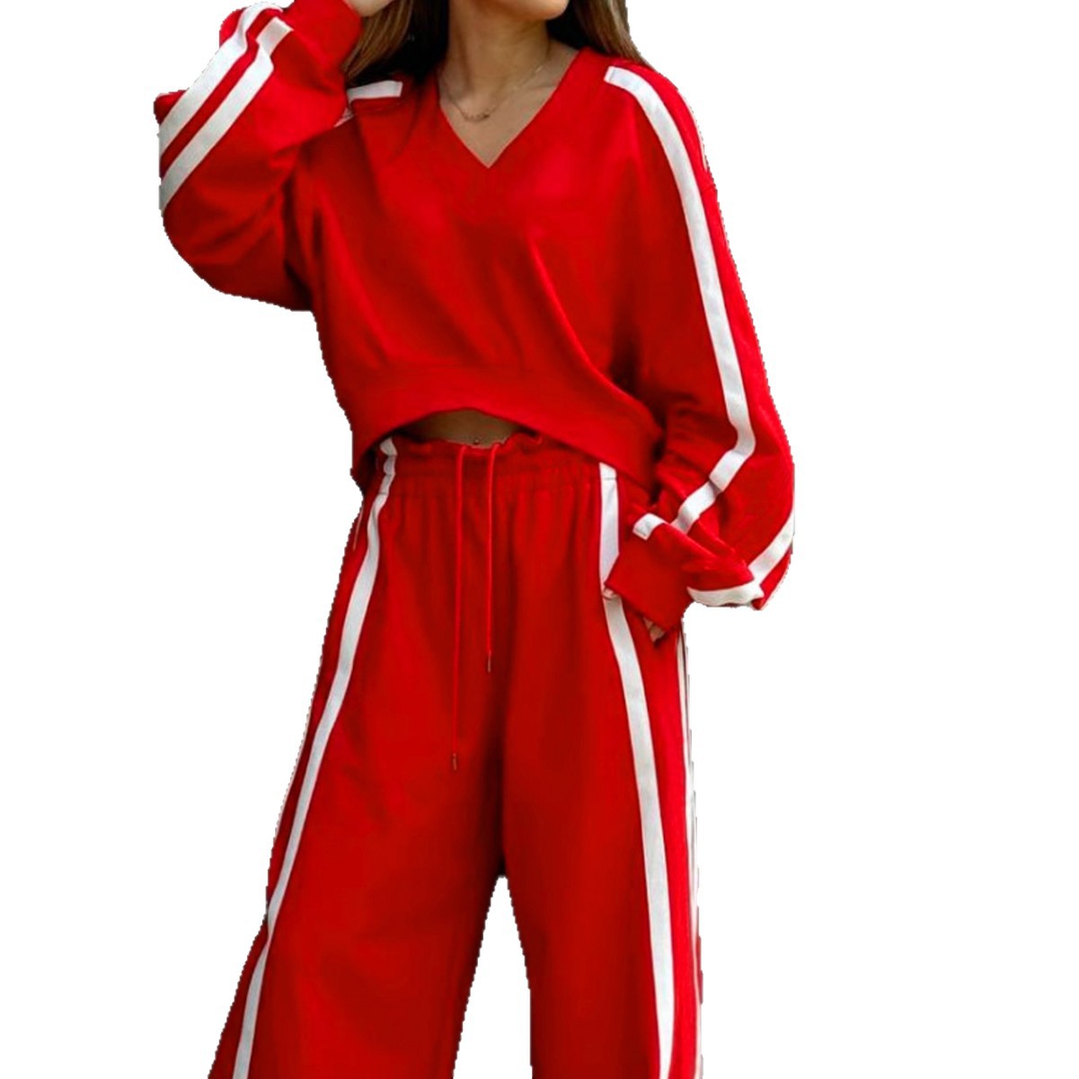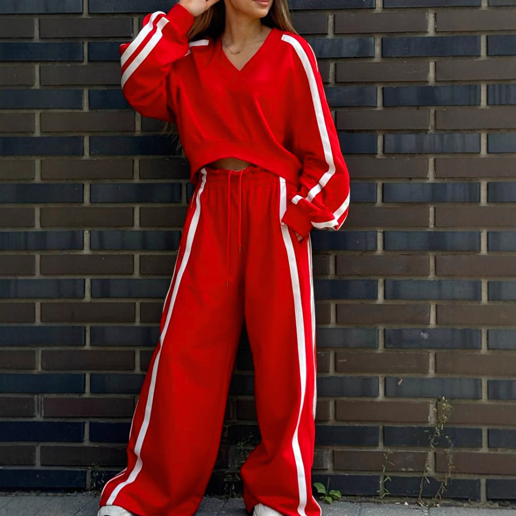 Women's Fashion Color-block Sporty Pants Two-piece Set