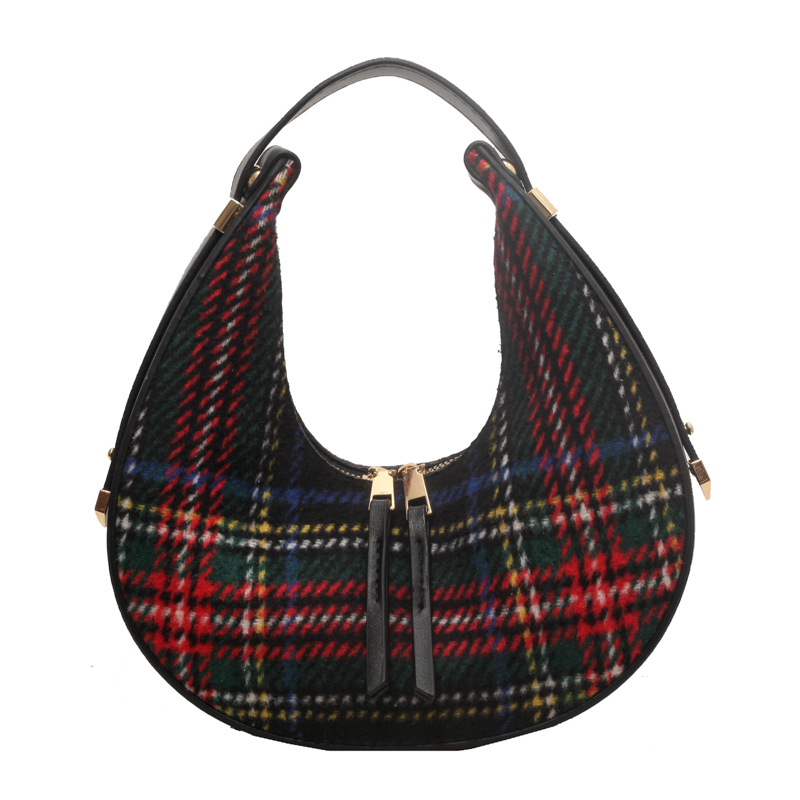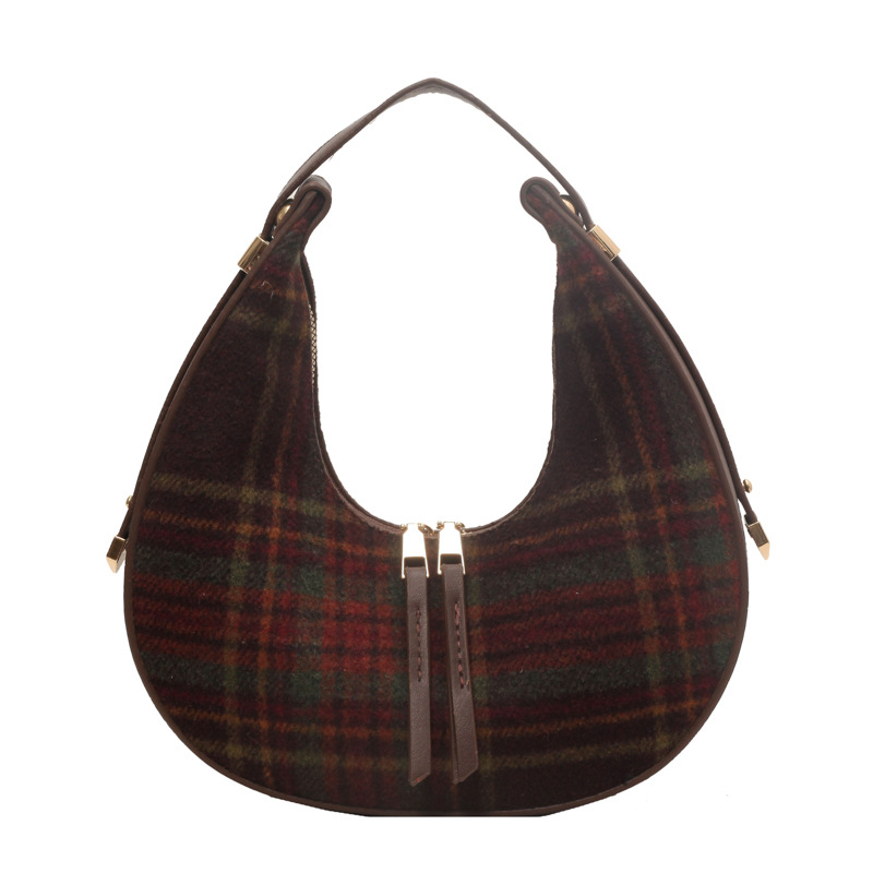 Women's Fashion Color Contrast Plaid Retro Hand Carrying Dumpling Bag