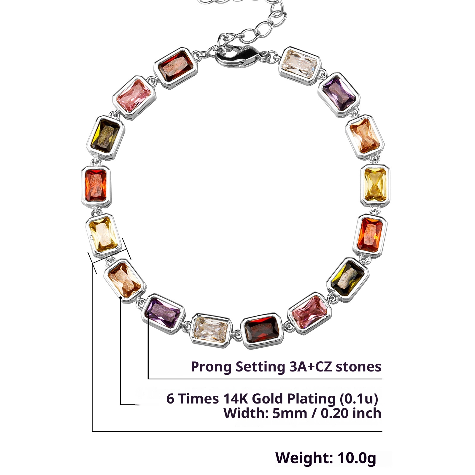 Color: gold rectangular zircon (4cm extension chain), silver rectangular zircon (4cm extension chain)