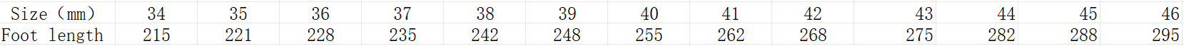 Size: 34, 35, 36, 37, 38, 39, 40, 41, 42, 43, 44, 45, 46