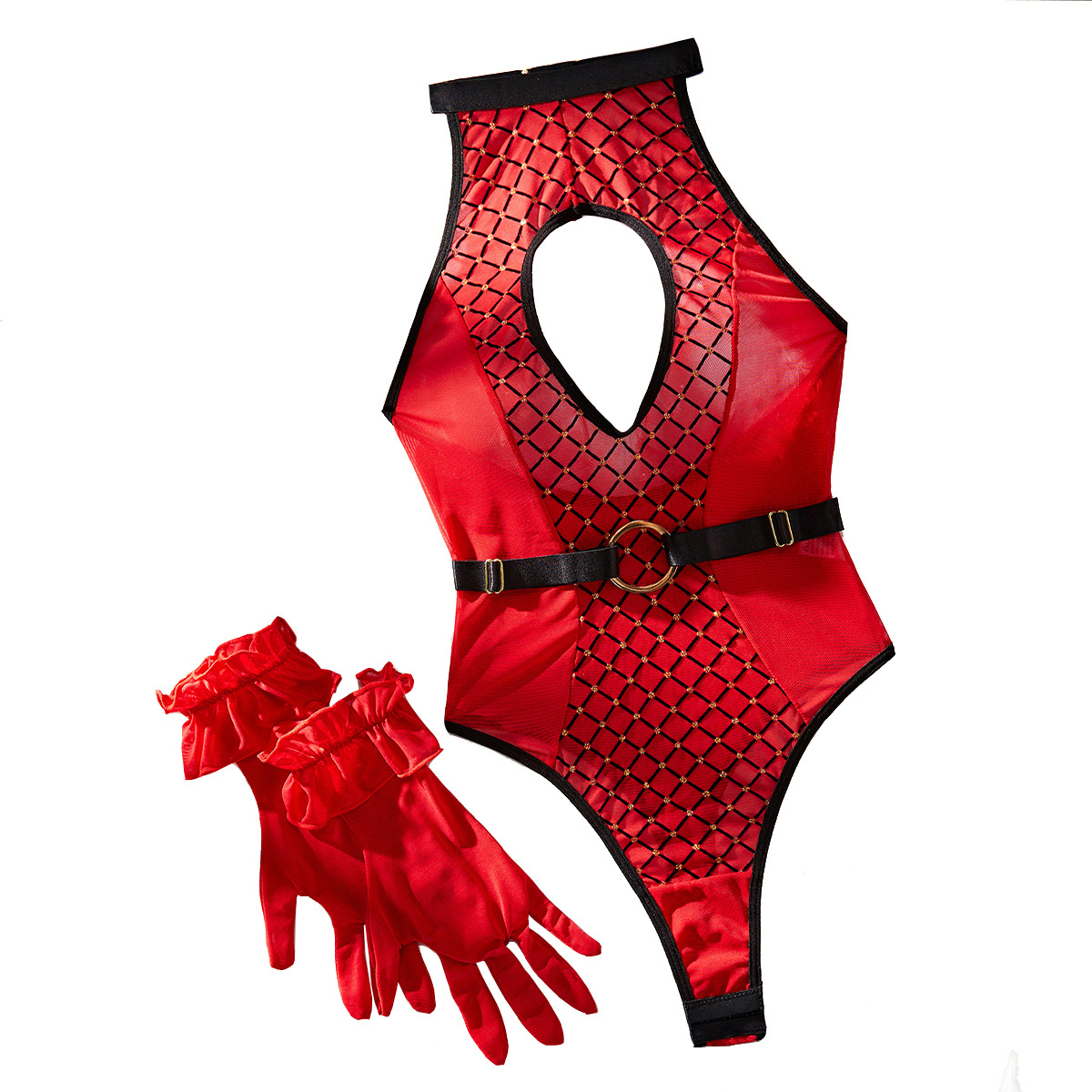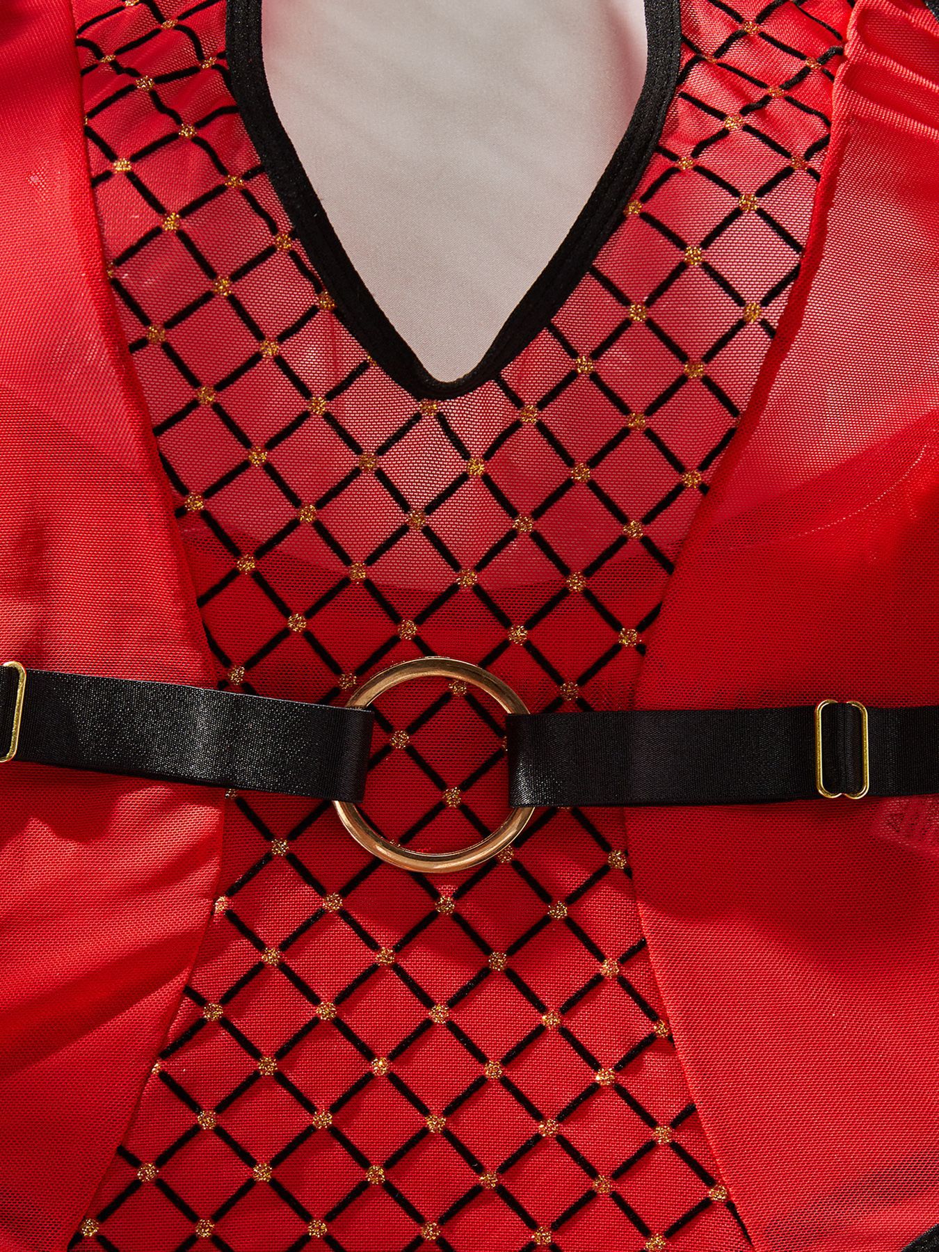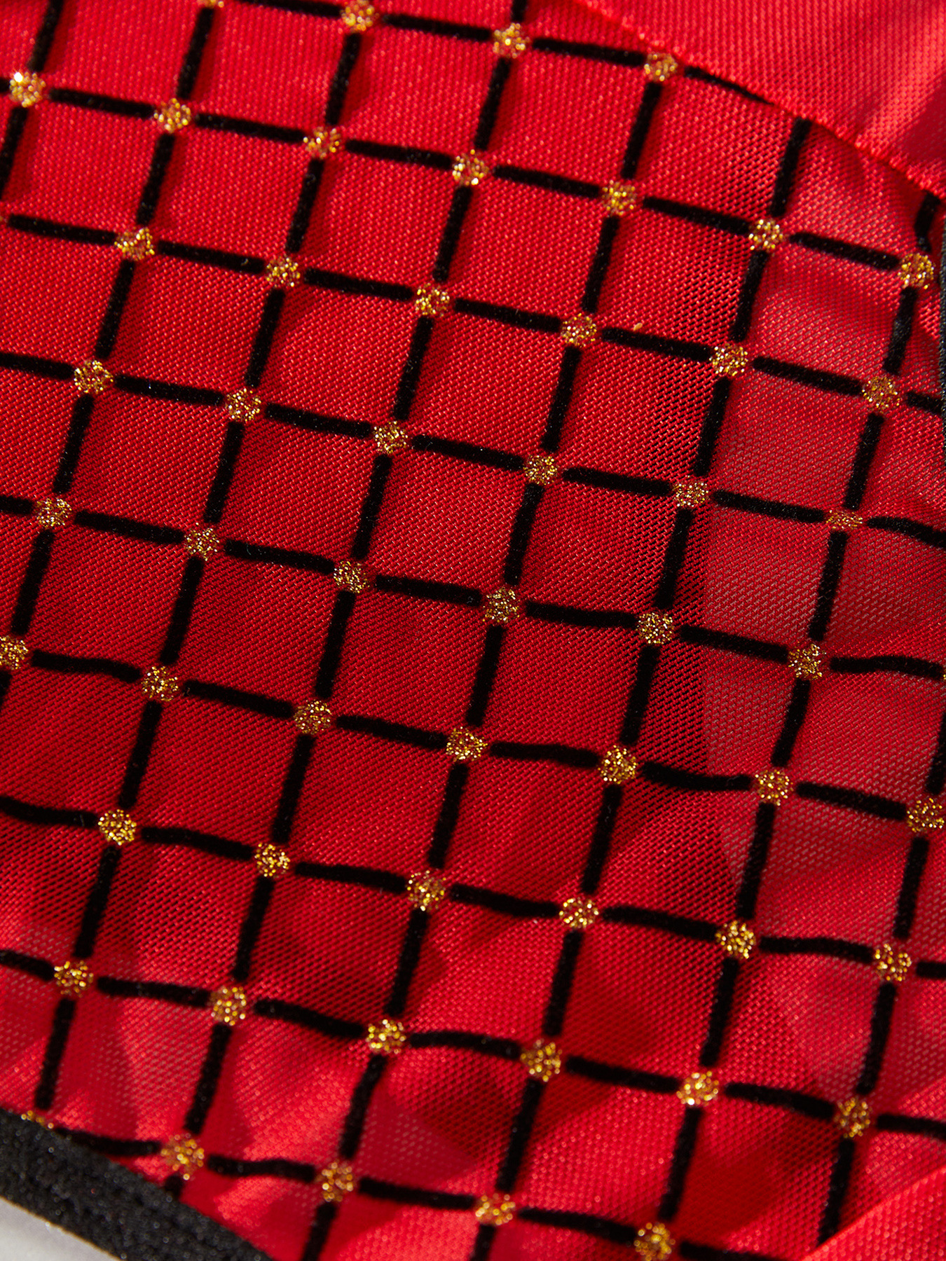 Women's Fashion Diamond Plaid Printed Mesh Stitching Hollow-out Jumpsuit