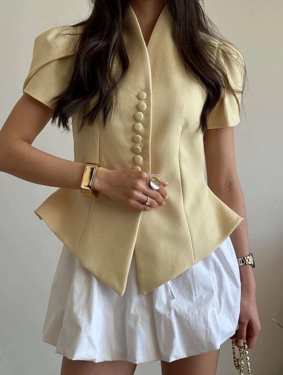 Women's Fashion Elegant Puff Sleeve Waist-Cinching Slim Fit European And American INS Style Blazer